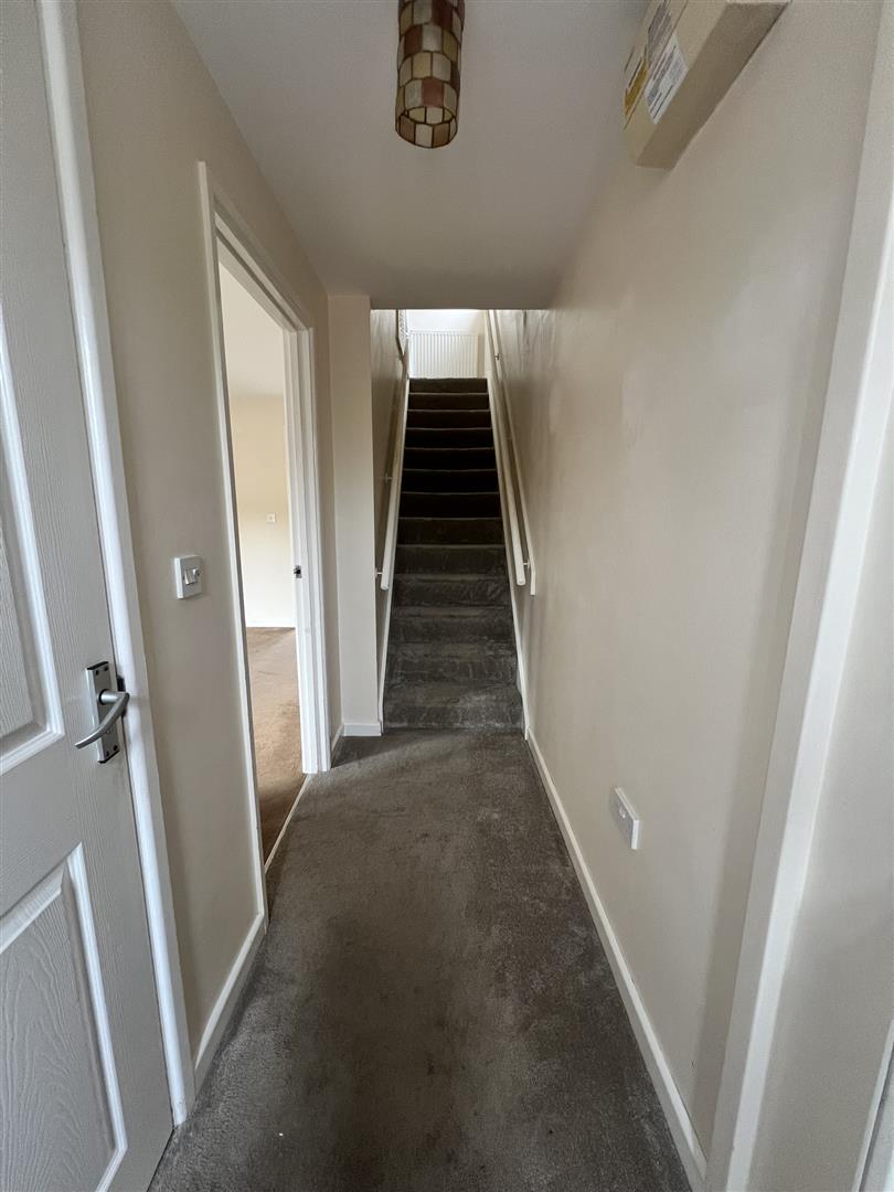 The property is accessed via a set of gently ascending steps with wrought iron railing leading to the upvc front door with obscure glazed panels to top. This leads into the: