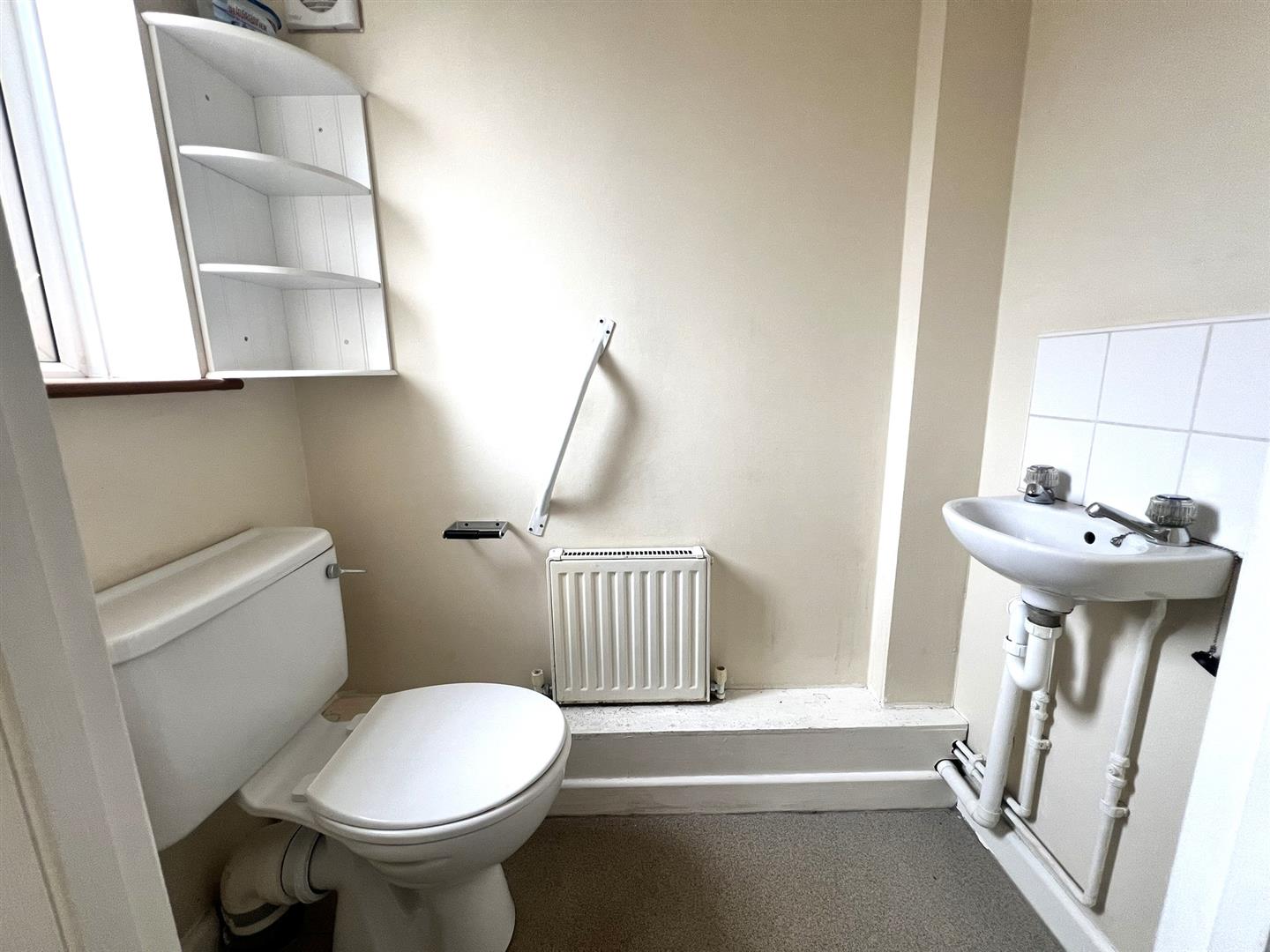 Cloakroom - Close coupled w.c, wall mounted wash basin with tiled splashback, single radiator, ceiling light, extractor fan, front aspect upvc Georgian bar obscure double glazed window.