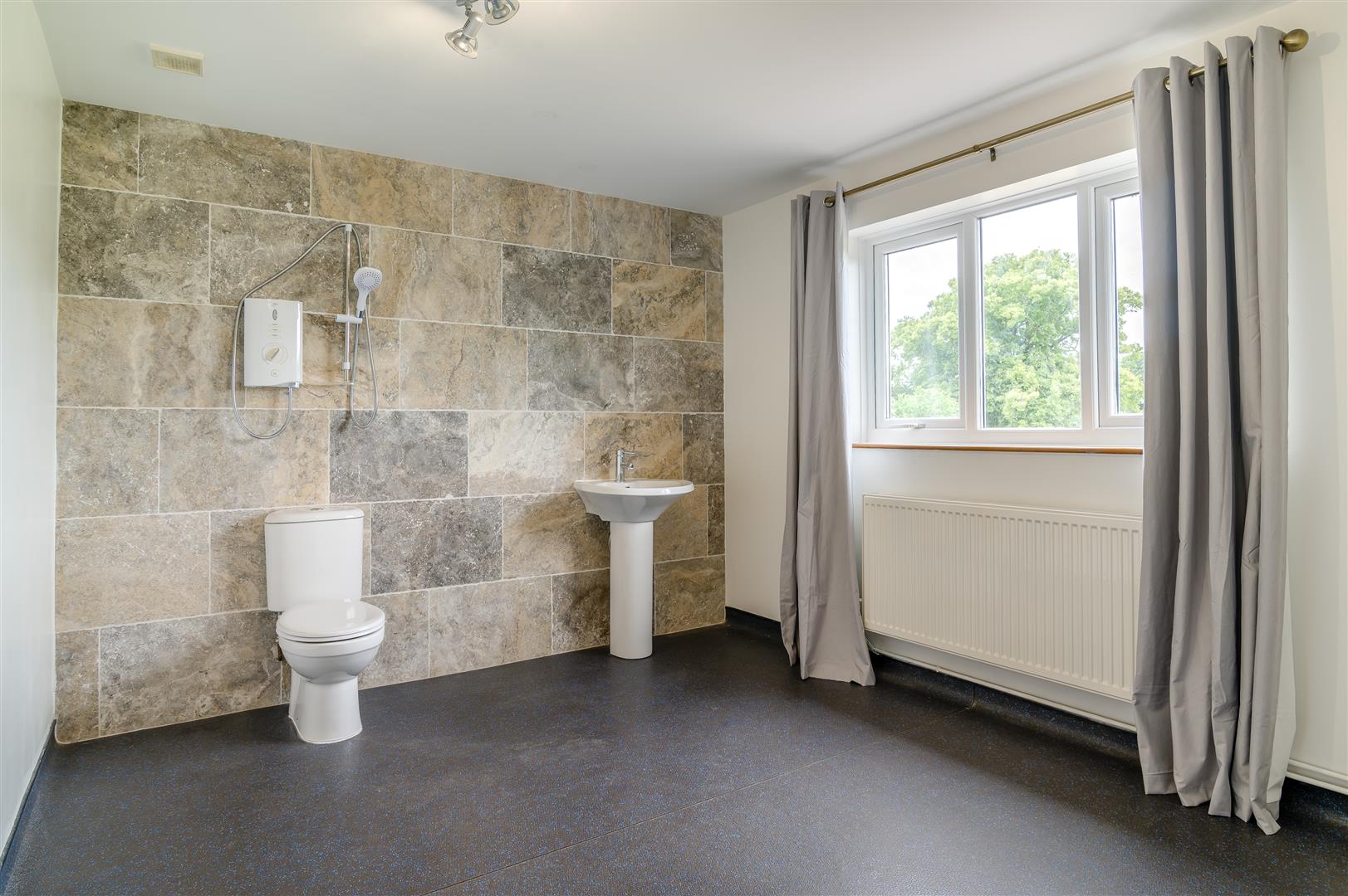 Wet Room - Could serve the annexe, low level w.c, pedestal washbasin, shower cubicle, rear aspect window.