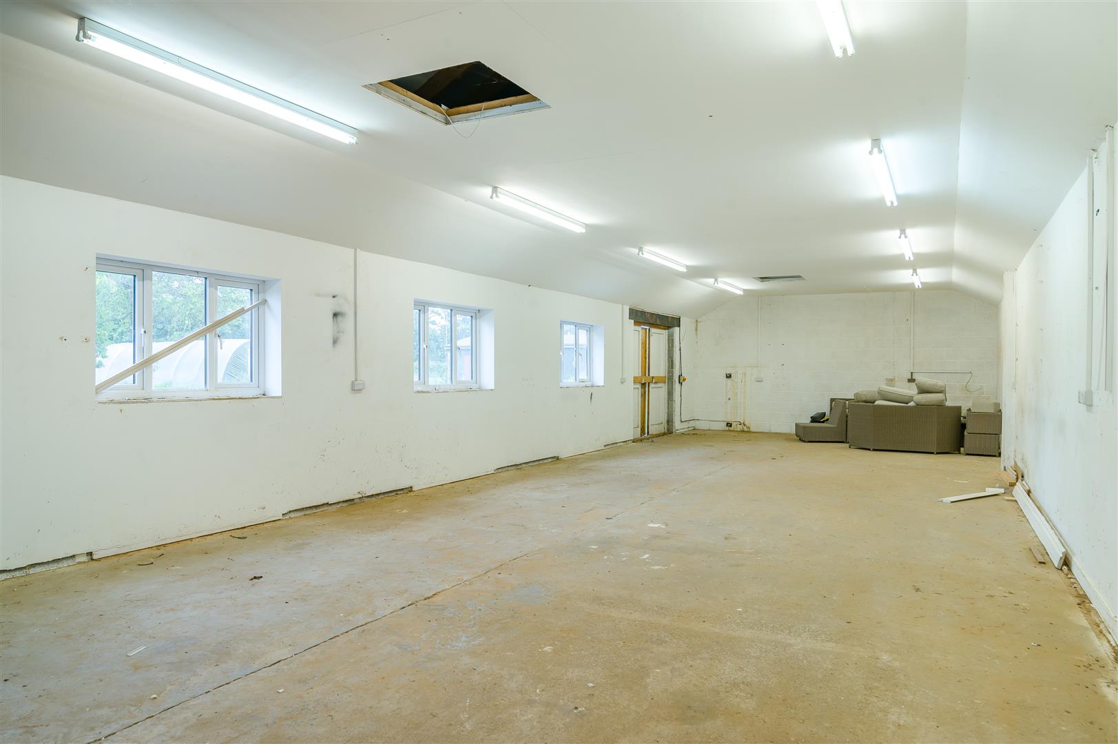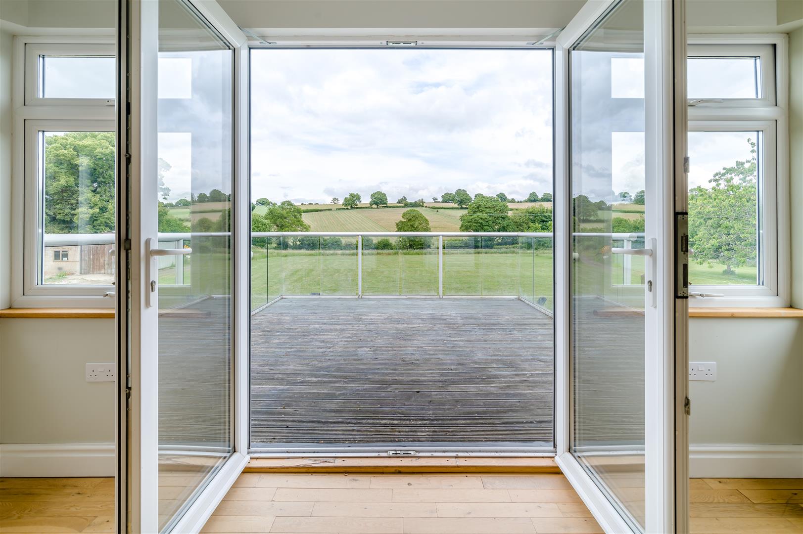 Bedroom/Living Room - 9.07m x 3.71m (29'09 x 12'02) - A large adaptable space benefitting from triple aspect windows with superb views over surrounding countryside. French doors lead out to a balcony with glass balustrade and timbered staircase that leads to the rear of the property.