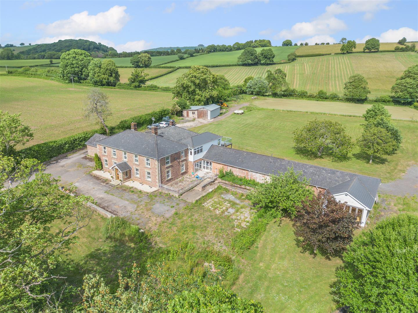 An exceptional opportunity to acquire this IMPRESSIVE SIX/SEVEN-BEDROOM RESIDENCE, occupying a PRIME POSITION ON THE EDGE OF MITCHELDEAN and SURROUNDED BY OPEN FIELDS. Offering APPROXIMATELY 3,900 SQ. FT. OF HIGHLY VERSATILE ACCOMMODATION, the property is PROMINENTLY SET WITHIN GARDENS AND GROUNDS APPROACHING 4 ACRES.