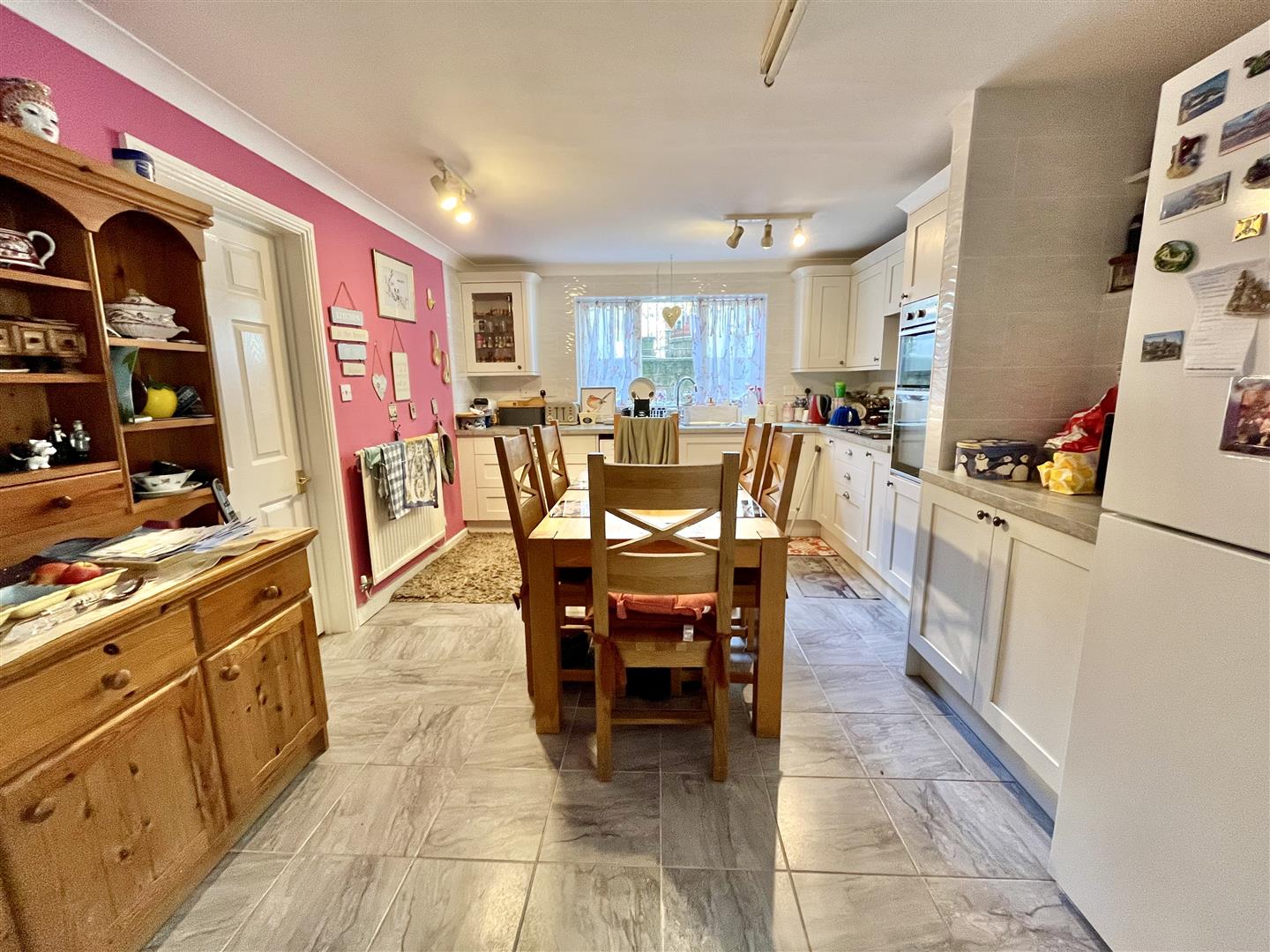 Kitchen - 5.26m x 3.51m (17'3" x 11'6") - Comprising modern fully fitted wall and base level units with laminate worktops, inset stainless steel sink unit with drainer, integral electric double oven and induction hob. Space for a washing machine and fridge/freezer. Storage cupboard, tiled floor, radiators, side and rear aspect windows, rear aspect door leading out to the garden. Doors lead to the w.c and sitting room.