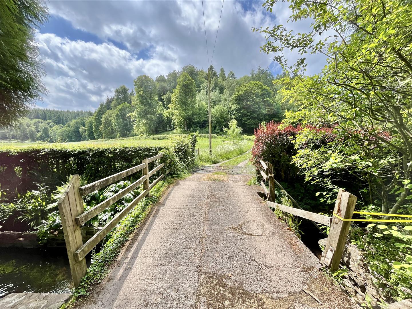 Parking - At the front of the property, a tarmac driveway-accessed via a shared track that crosses a small bridge over a stream-provides parking for three to four vehicles.