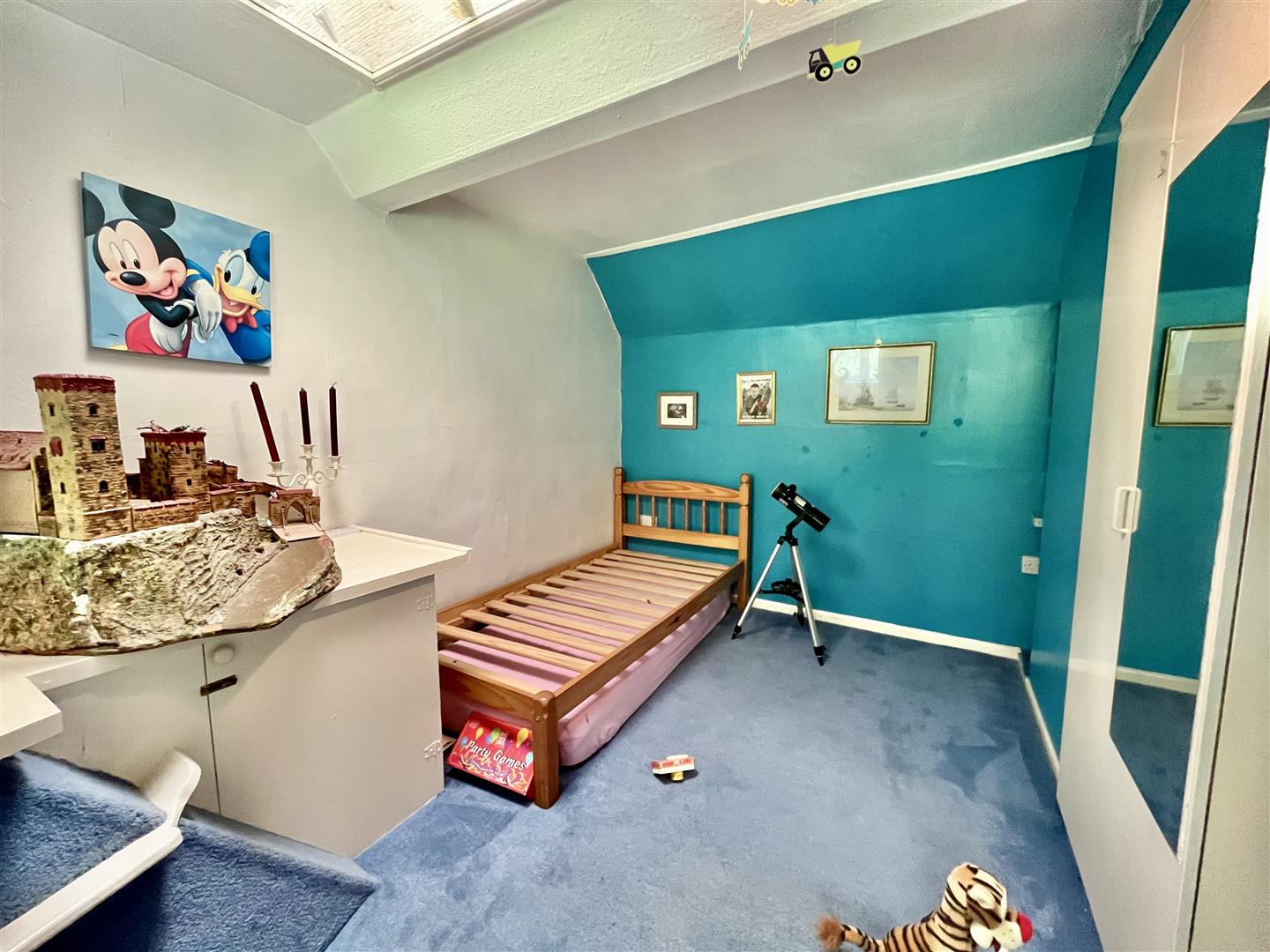Bedroom One - 4.01m x 3.38m (13'2" x 11'1") - Built in storage cupboard, radiator, side aspect window and front aspect skylight with lovely outlook over the gardens.