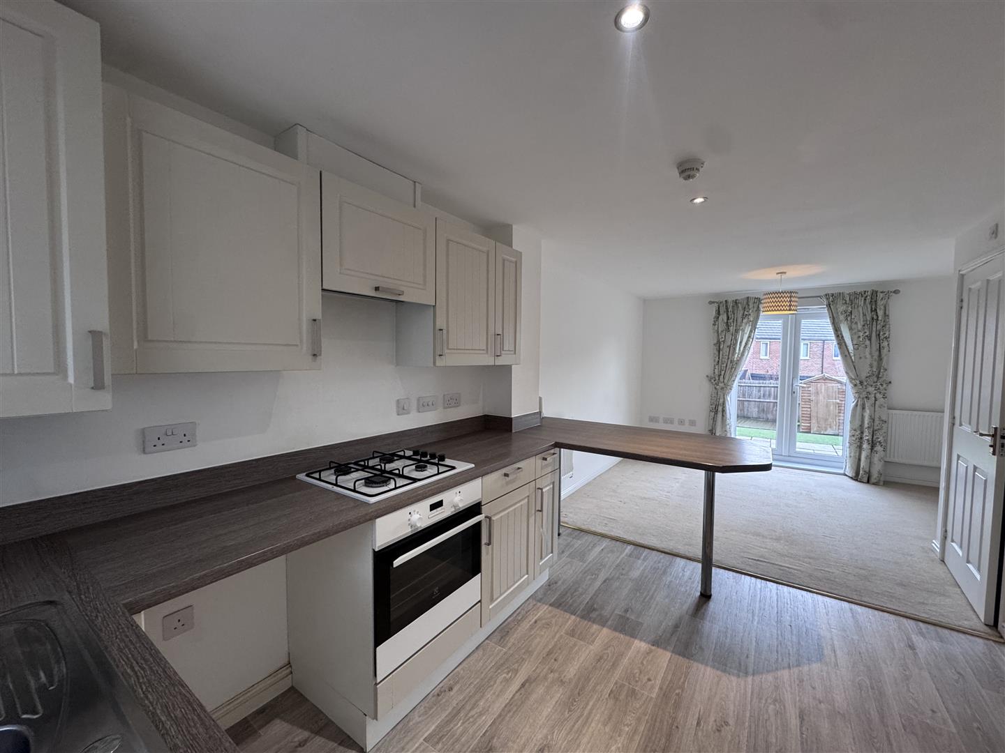Kitchen / Living Room - 6.71m x 3.68m (22'0 x 12'1) - The kitchen comprises of a range of base, wall and drawer mounted units, built-in cooker with four ring gas hob, extractor fan over, cupboard housing the Ideal gas-fired boiler, plumbing for washing machine, breakfast bar, inset ceiling lights, front aspect UPVC double glazed window.