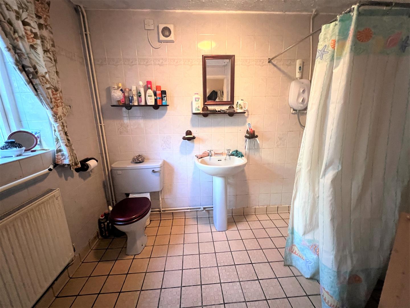 Ground Floor Wet Room - 2.77m x 2.08m (9'1 x 6'10) - Fully tiled floors, electric shower, tiled surround, pedestal wash hand basin with tiled splashback, close coupled WC, radiator, side aspect window.
