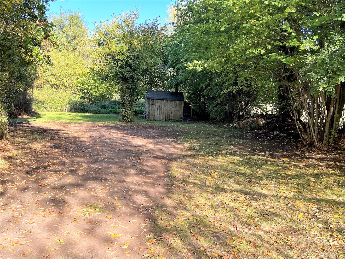 On the other side of the road, there is a lovely piece of ground with a gravelled driveway suitable for the parking of several vehicles, caravan, boat etc., large expanse of lawn, mature trees surrounding, having a lovely outlook over surrounding fields and farmland, wooden garden shed, stone outbuilding (13'7 x 12'6).