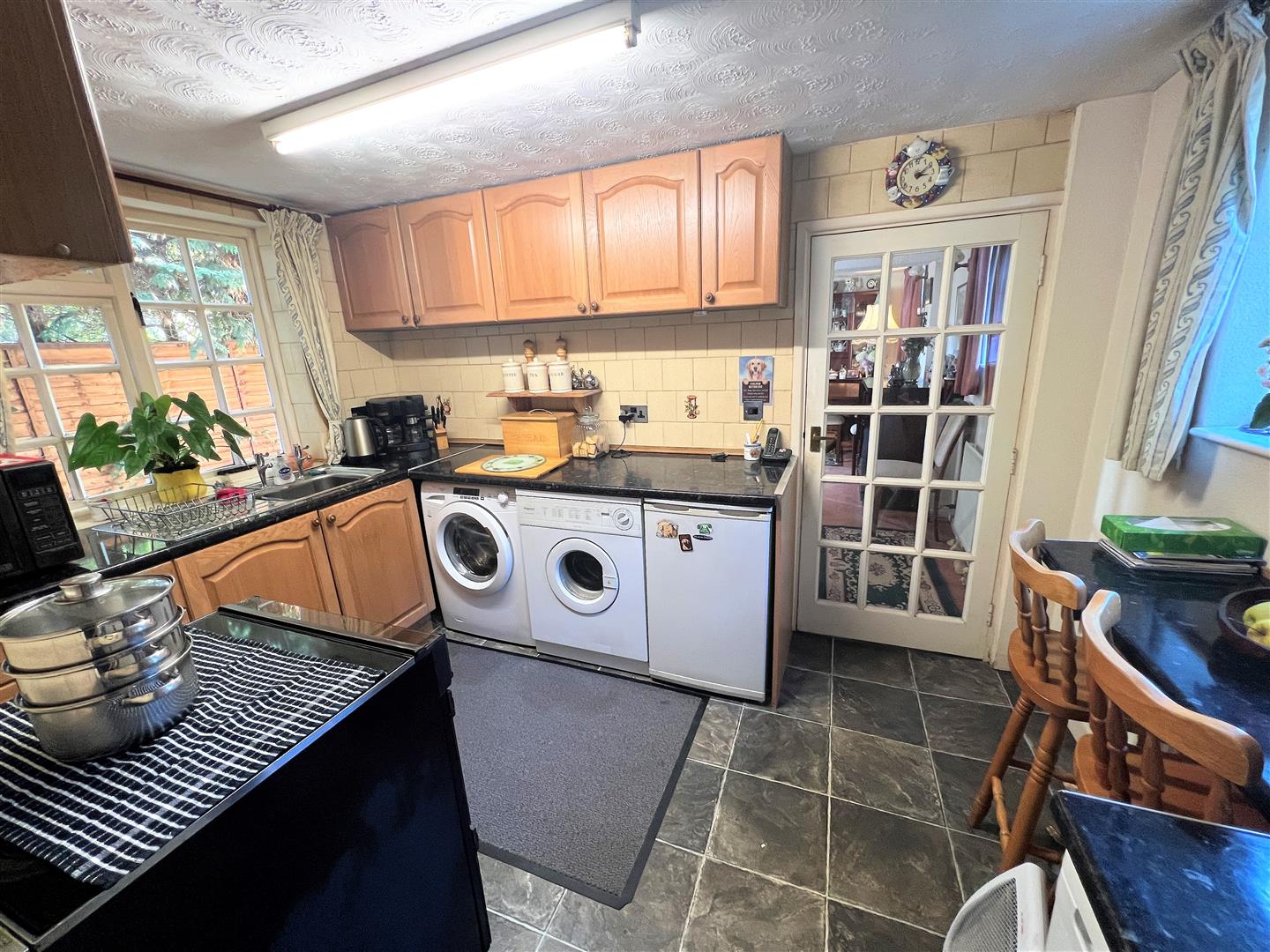 Kitchen - 3.40m x 2.31m (11'2 x 7'7) - Stainless steel single drainer sink unit with cupboards under, range of base and wall mounted units, plumbing for washing machine, space for fridge / freezer, wall mounted gas fired central heating and domestic hot water boiler, single radiator, front and rear aspect windows. Fully glazed door to: