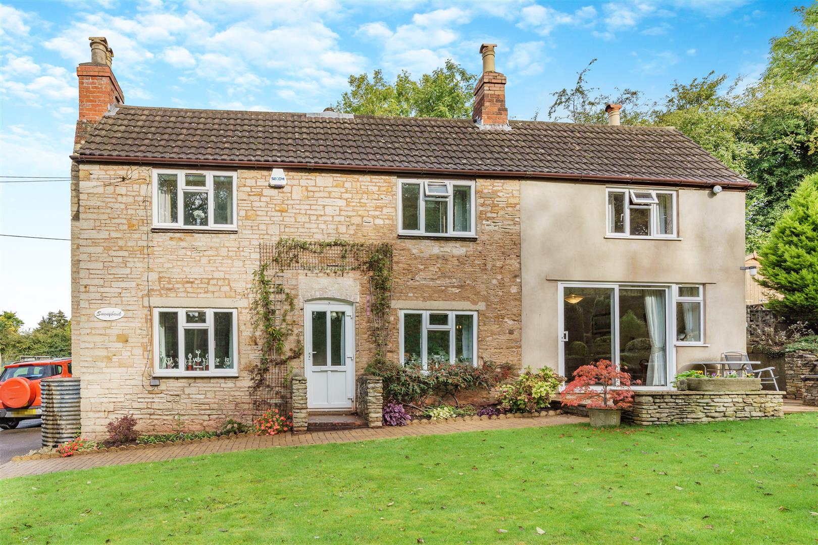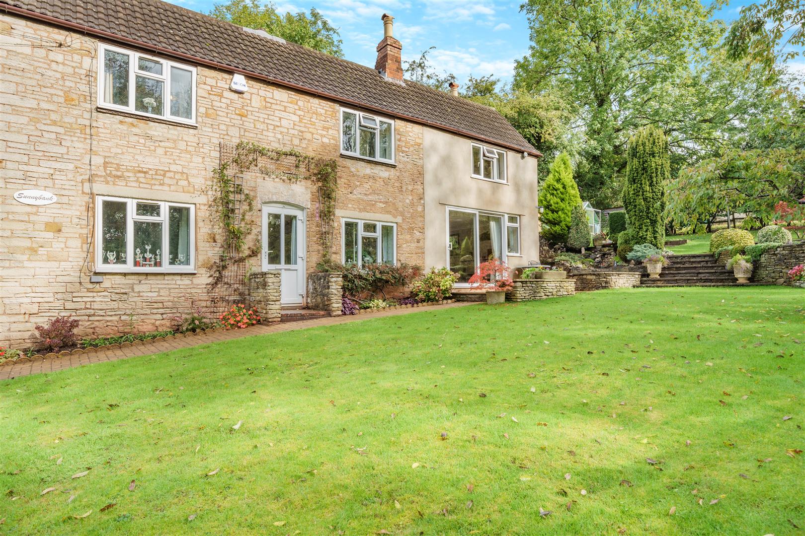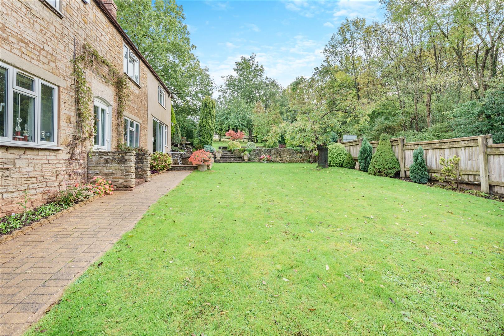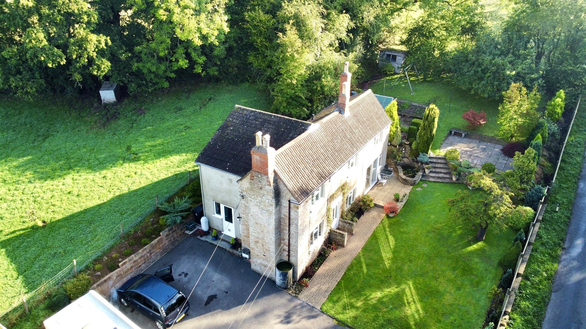 The property has lovely gardens surrounding, predominantly to the south facing front of the property with various lawned areas, pathways, Gorsley stone walling, paved patio areas, fish pond with waterfall, further large patio, greenhouse, garden shed, vegetable produce area, outside lighting, outside tap, mature fruit trees, fencing surround. To the rear, there is a lovely private outlook onto open fields. The whole plot amounts to approximately 1/5th of an acre.