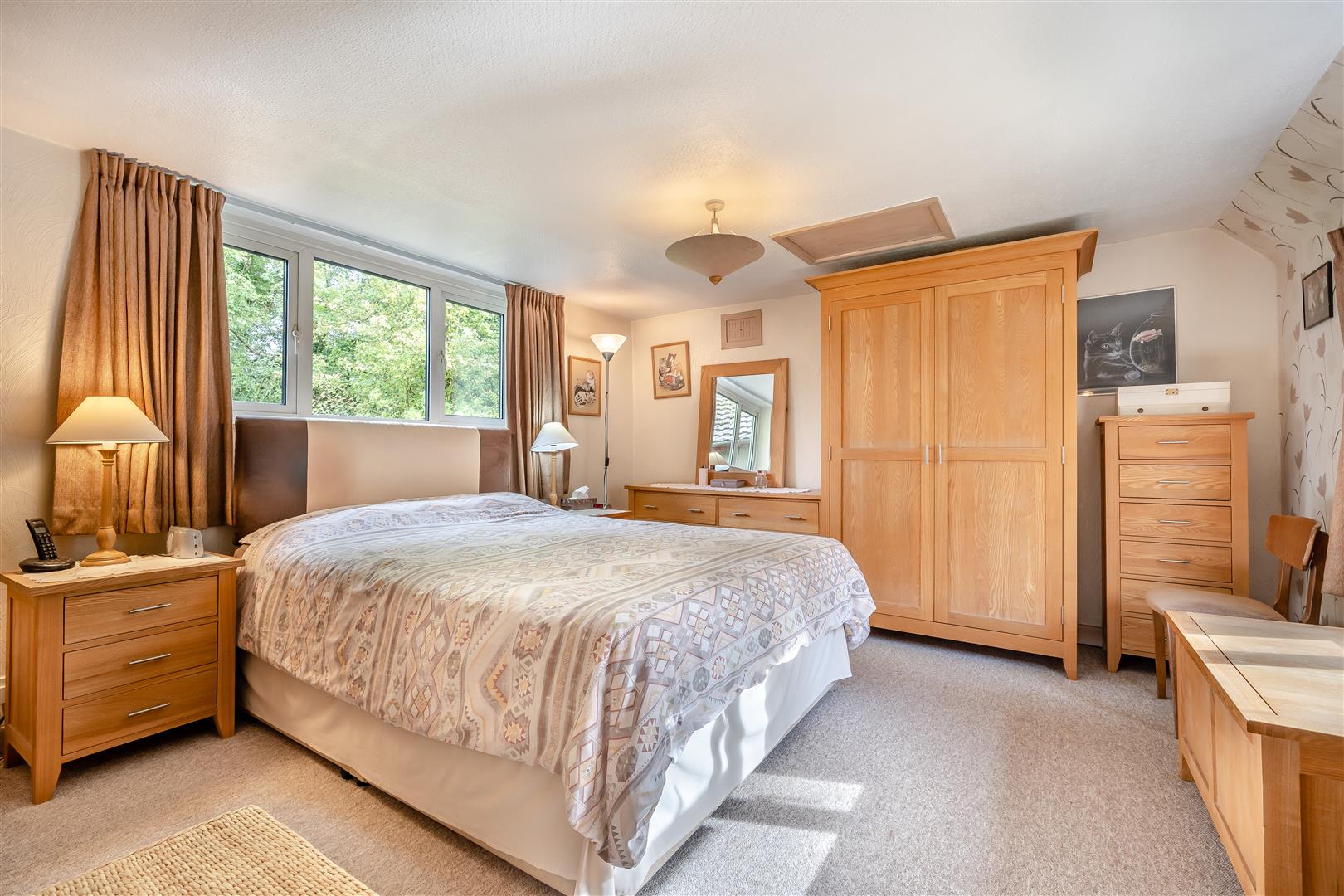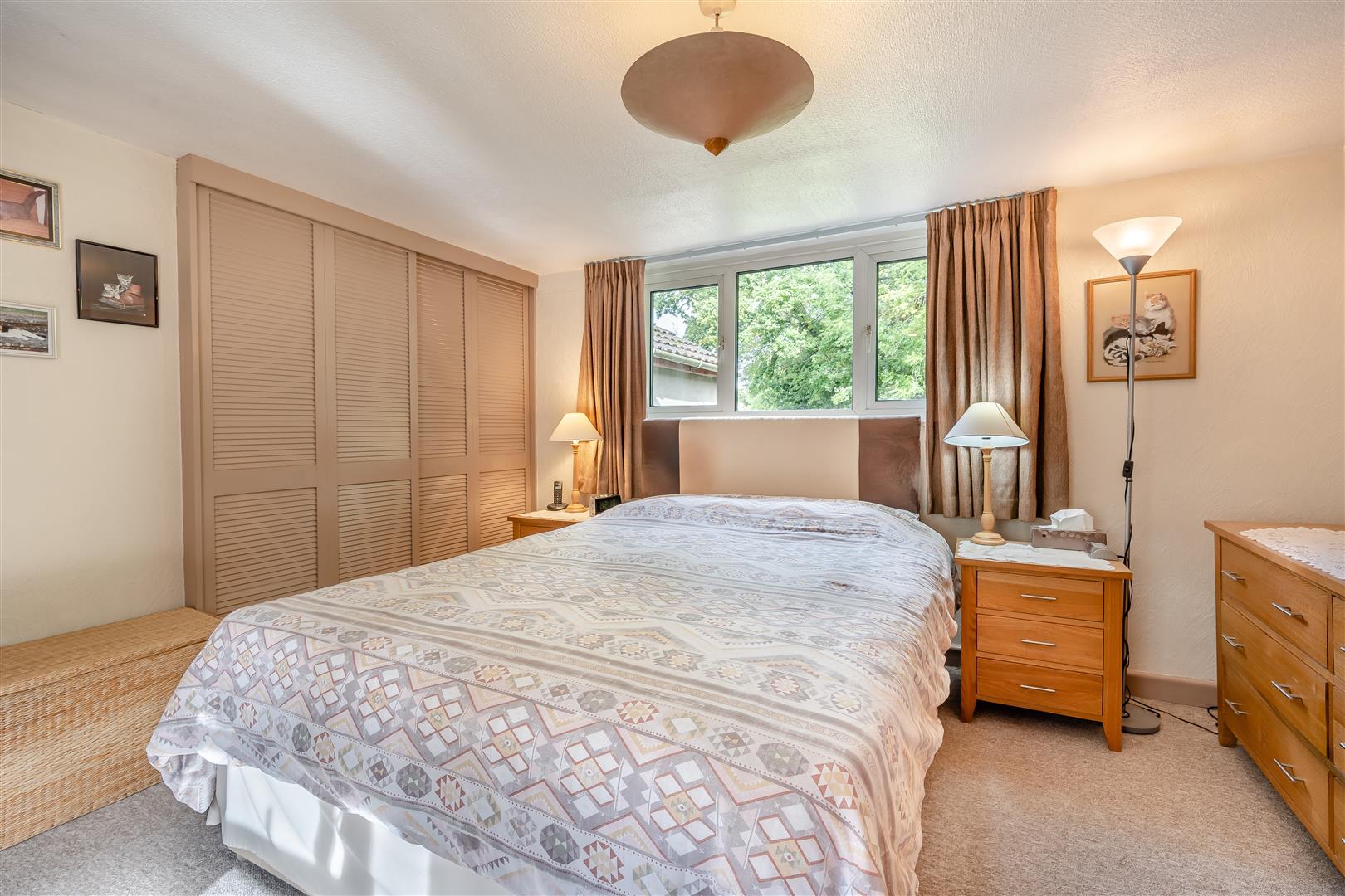 Master Bedroom - 3.66m x 3.51m (12'0 x 11'6) - Single radiator, large built-in double cupboard with fitted shelving via sliding doors, access to roof space, front and rear aspect windows with an outlook to the rear over open fields.