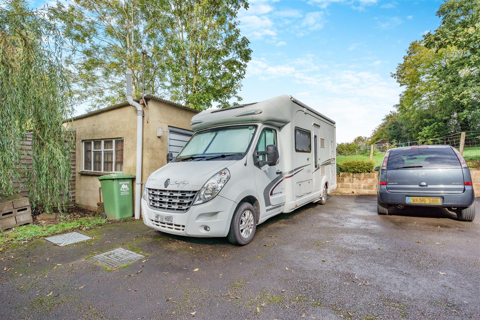 Outside - A tarmac driveway, suitable for the parking of several vehicles, caravan etc., leads through to: