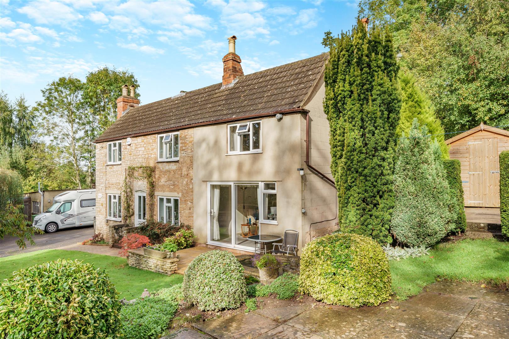 A FOUR DOUBLE BEDROOM DETACHED COTTAGE having TWO RECEPTIONS, situated in a PLOT OF 1/5TH OF AN ACRE, SOUTH FACING TO THE FRONT, AMPLE PARKING, DETACHED DOUBLE GARAGE / WORKSHOP situated within EASY REACH OF THE MARKET TOWN OF NEWENT.
