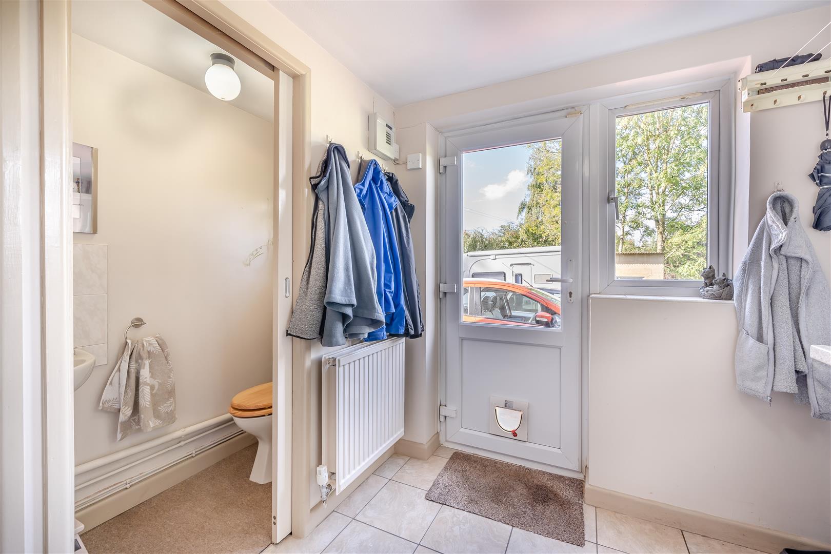 Utility - 2.29m x 2.26m (7'6 x 7'5) - Wall mounted gas-fired central heating and domestic hot water boiler, double radiator, built-in broom cupboard, tiled flooring, side and rear aspect windows with a private outlook over the surrounding fields, half glazed UPVC door through to the side.