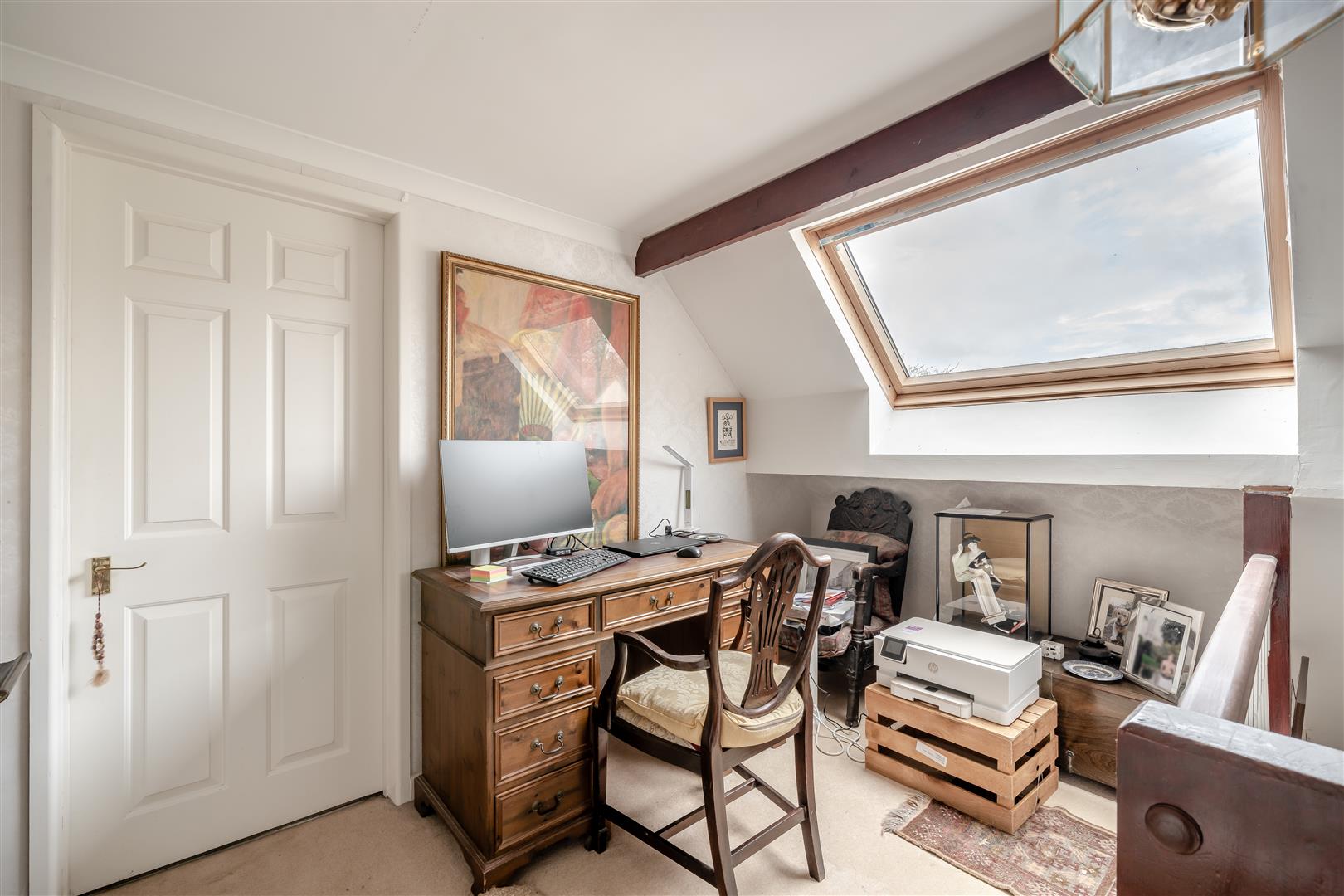 Bedroom 2 - 3.84m x 3.05m (12'7 x 10'0) - Built-in double wardrobe with hanging rail, single radiator, wash hand basin with tiled splashback, eaves storage, access to roof space, rear aspect window with a lovely outlook over the gardens.