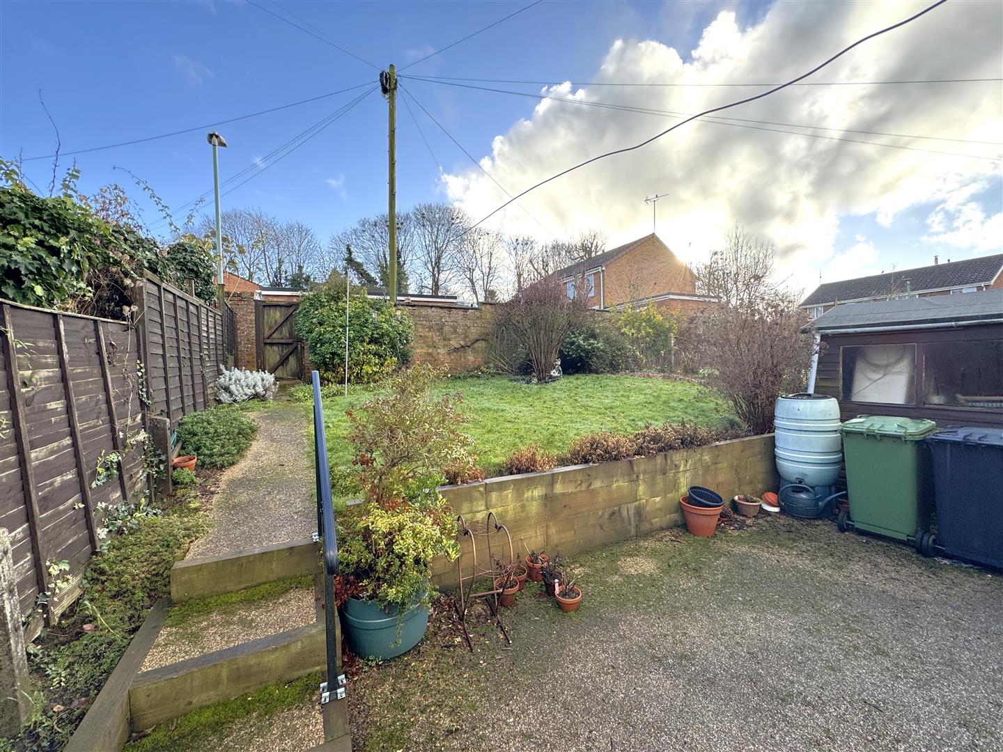Outside - To the front of the property, the front garden is laid to lawn with planted borders, resin bound pathway leading around both sides of the property with gated access to the rear gardens. The rear gardens comprise of a resin bound seating area, wooden garden shed, outside water tap and lighting, steps leading to the main part of the garden which is laid to lawn with mature borders surrounding and planted with flowers, shrubs and bushes, all enclosed by fencing and walling. A gated access to the rear, leads to parking and garages.