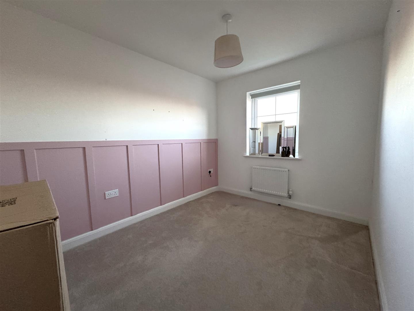 Master Bedroom - 3.53m x 3.53m max (11'7 x 11'7 max) - Panelled wall to one side, single radiator thermostat control, built in wardrobe with handing rail and shelving, chest of drawers, front aspect window.