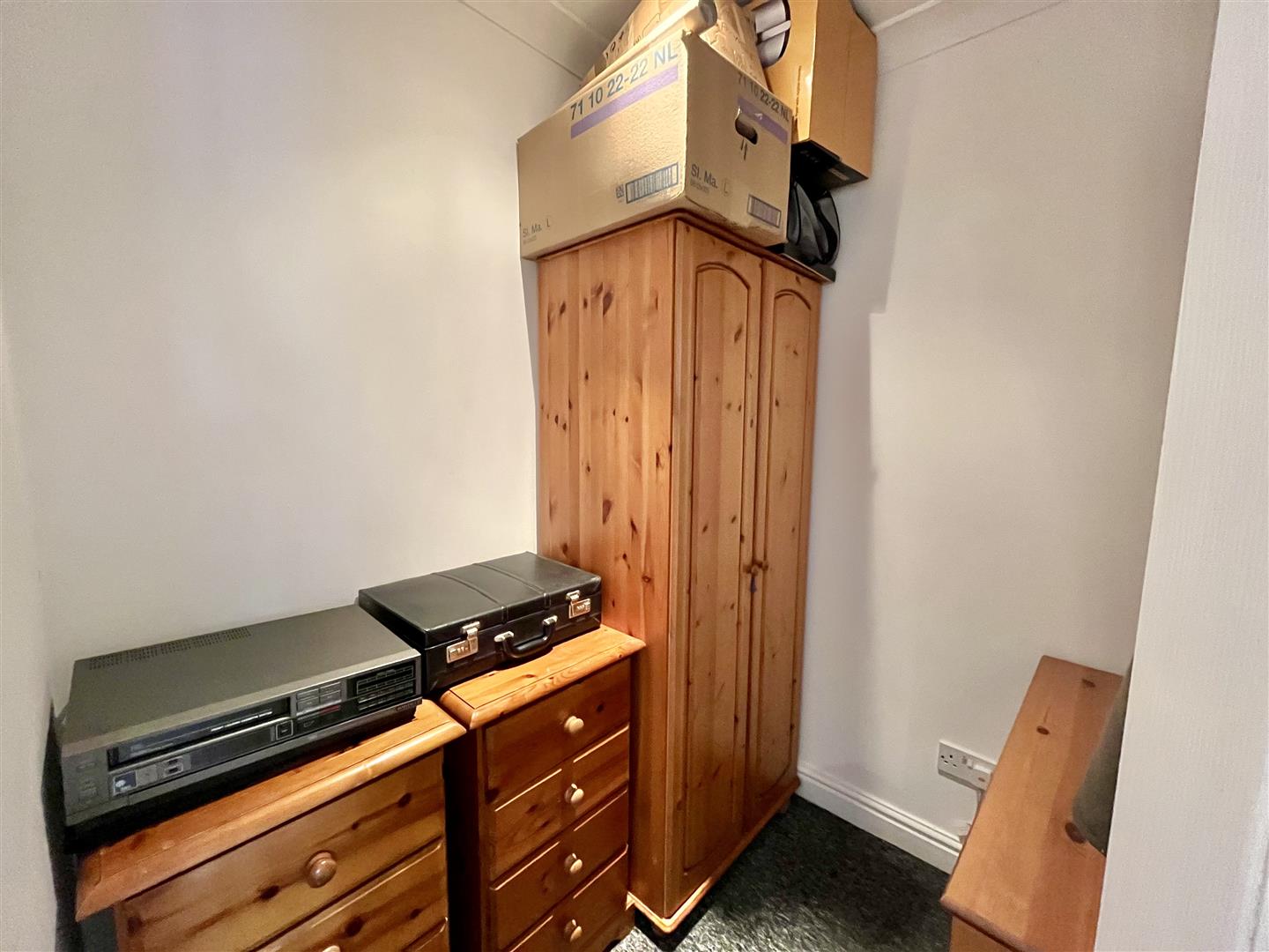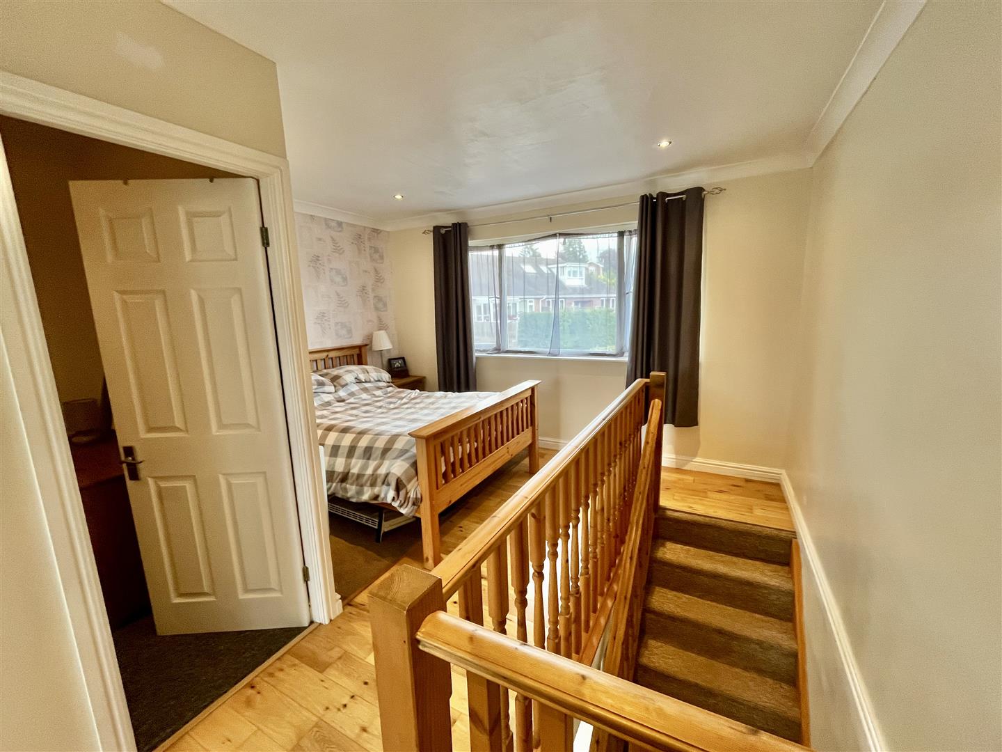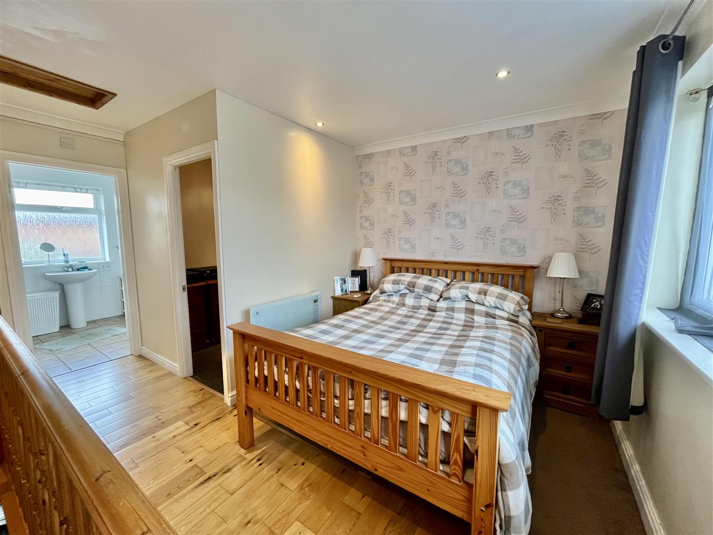 Bedroom - 4.27m x 3.89m (14'00 x 12'09) - A spacious room with hardwood flooring, wall mounted electric heater, loft hatch to loft space, rear aspect window, door into the dressing room with power and lighting. Door into;