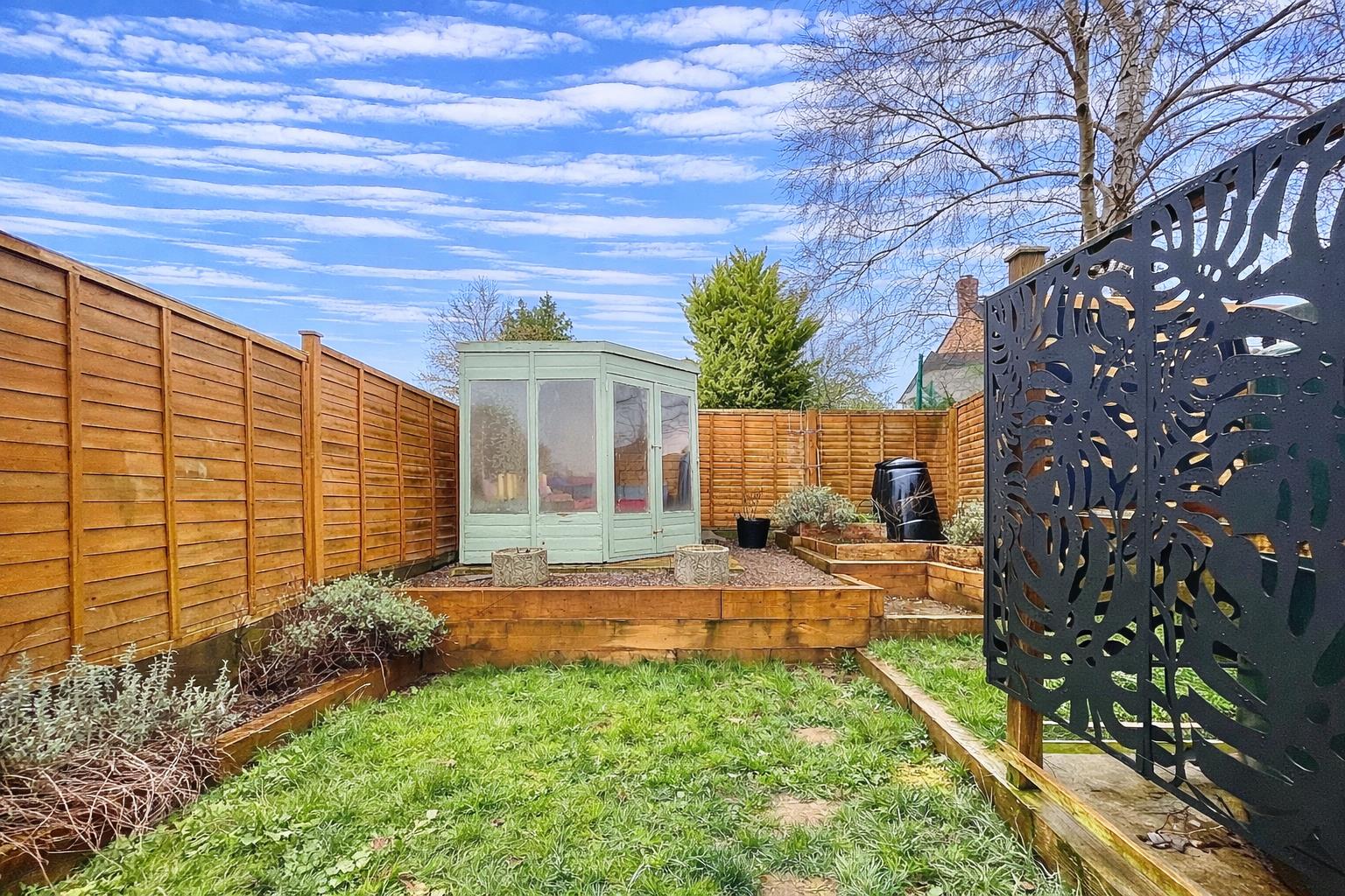 Outside - Steps up from the block paved driveway to a path leads to the side entrance and along to the rear garden. There are two sheds located below the balcony, one is a small workshop with window and the other is a log store. The rear garden is laid to both patio and lawn, there is a summer house and raised beds as well as the oil tank. The garden is private and partially enclosed by fencing.