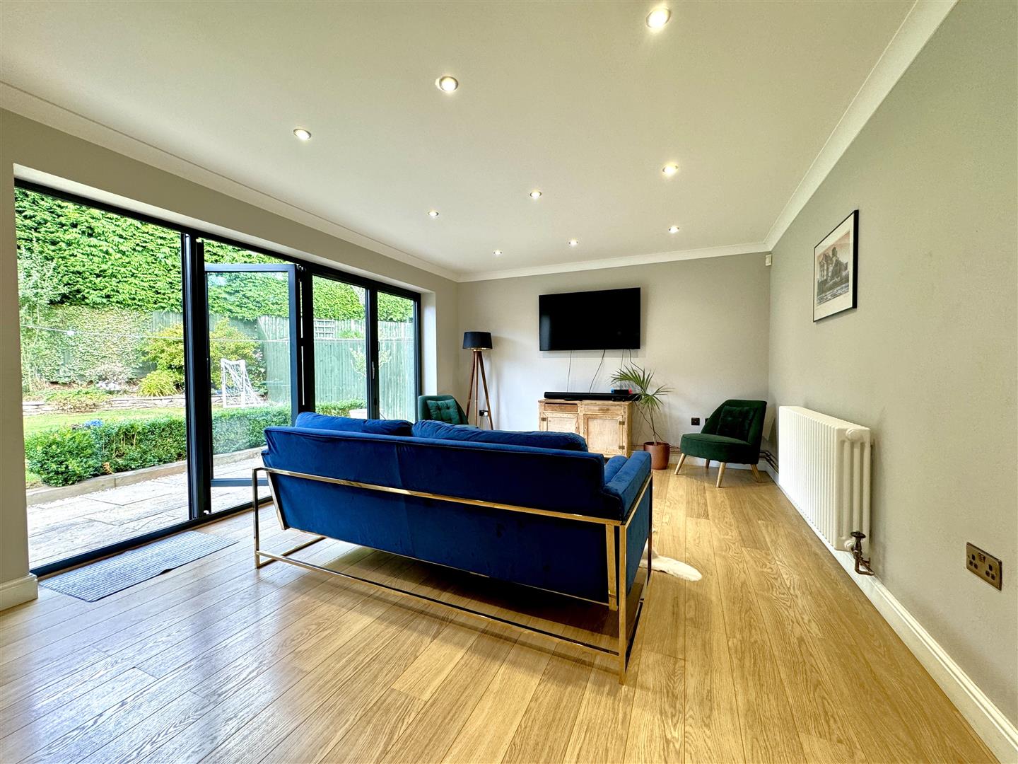 Lounge - 5.66m x 3.81m (18'7 x 12'6) - Cast iron log burner, media wall with TV and sound bar recess, cabinets and storage to either side of chimney breast, two double radiators, TV point, dimmer switch lighting, rear aspect window, double opening French doors to patio and gardens.