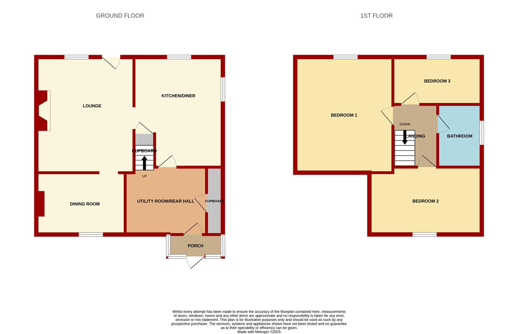 The accommodation comprises LOUNGE, DINING ROOM, KITCHEN/BREAKFAST ROOM, REAR HALL and UTILITY to the ground floor, with THREE BEDROOMS and FAMILY BATHROOM to the first floor.