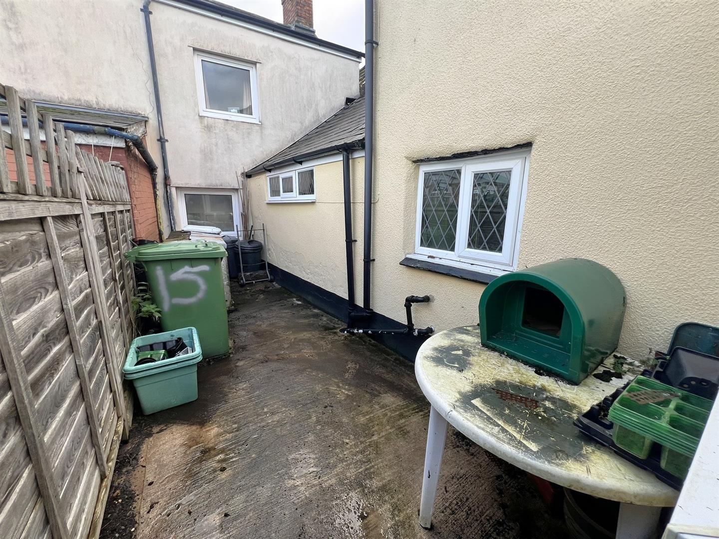 To the rear is an external Worcester oil-fired boiler for central heating and hot water, a courtyard garden with a coal bunker, and access to the rear porch.
