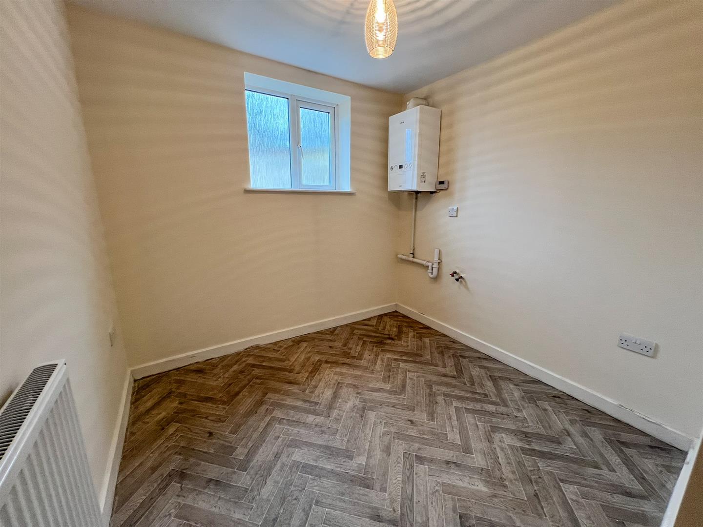 Utility - 2.46m x 2.29m (8'01 x 7'06) - Ceiling light, mains wired smoke alarm system, gas fired central heating and domestic hot water boiler, timer controls, plumbing for automatic washing machine, power points, single radiator, side aspect obscure upvc double glazed window.