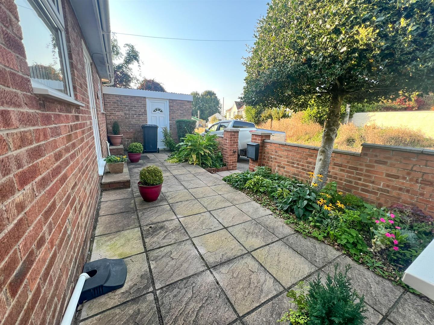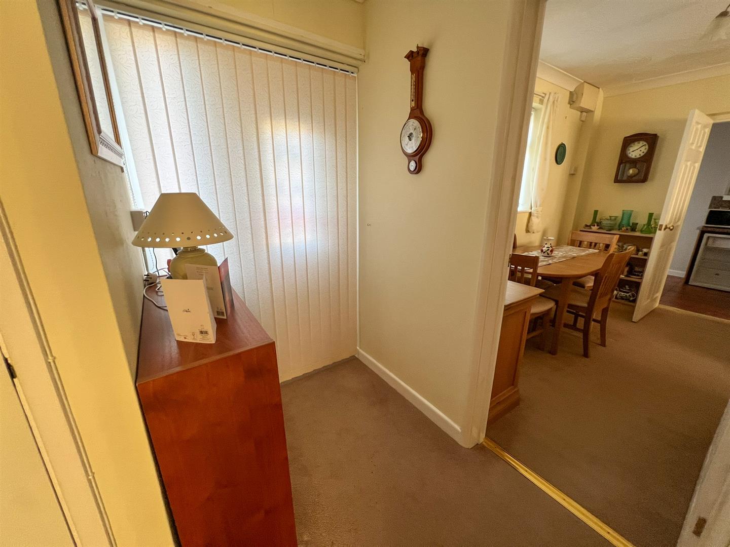 Outside - A personal gate opens to a paved pathway leading to the porch door. The front garden is laid to patio, featuring a mature holly tree, flower borders, shrubs, and bushes. The property benefits from UPVC fascia and guttering, with a door providing access to a utility/store room. The pathway continues across the front of the property and down the left-hand side.