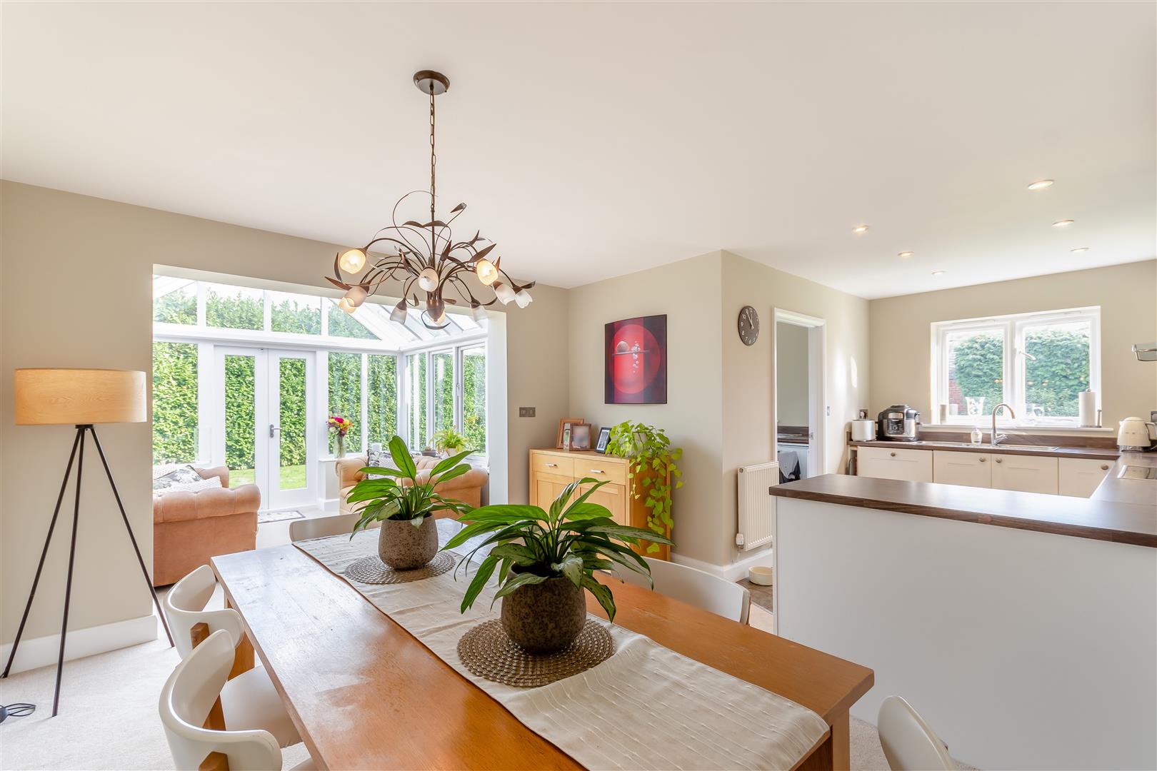 Kitchen/Family Room - 6.43m x 4.09m (21'01 x 13'05) - Fitted kitchen to comprise one and a half bowl single drainer sink unit, mixer tap, cupboards under, range of base and wall mounted units, fitted electric Zanussi hob, large built-in oven below, cooker hood above, integrated fridge and dishwasher, two single radiators, side aspect window with a private outlook over the gardens. Opening out to: