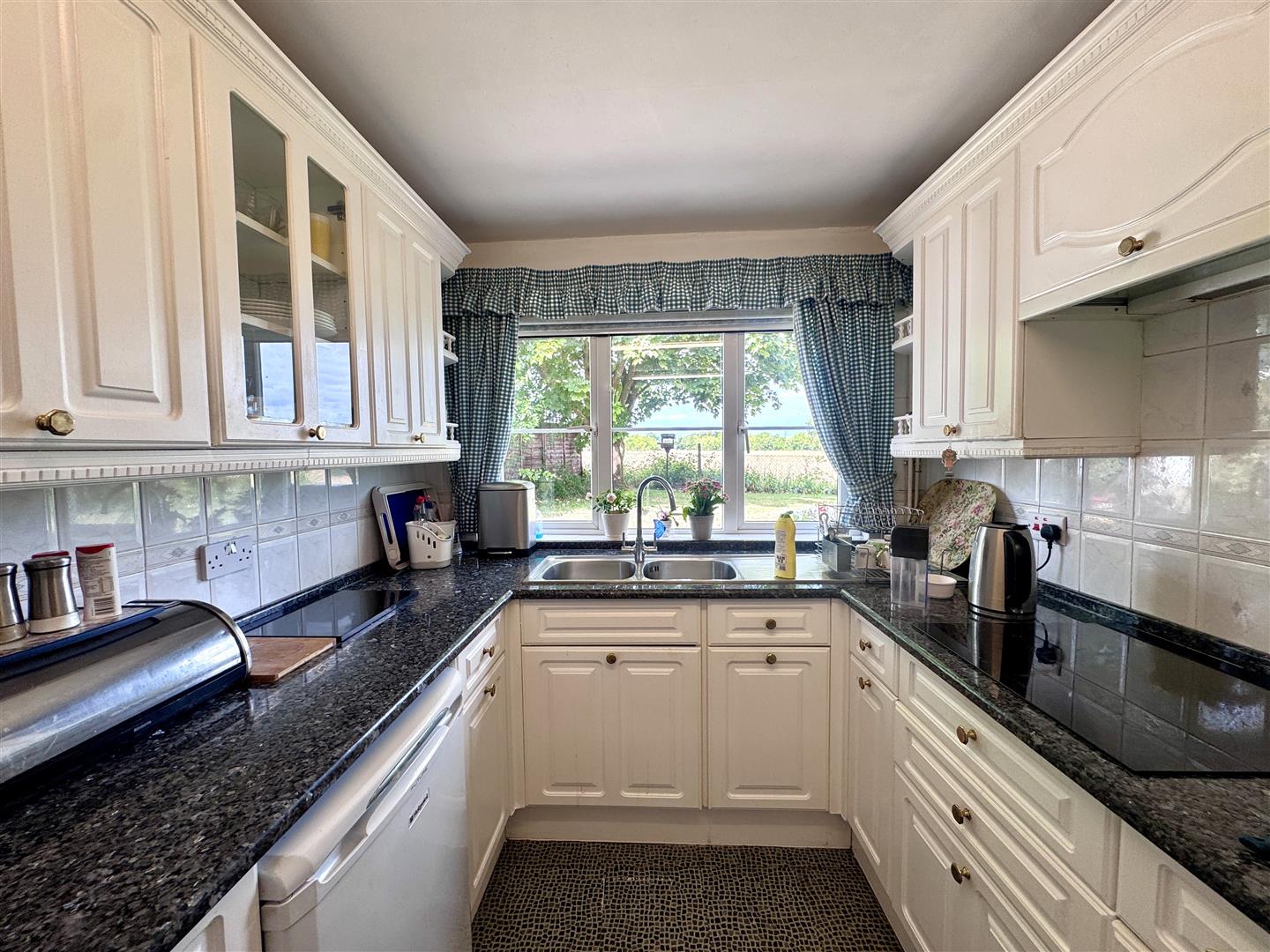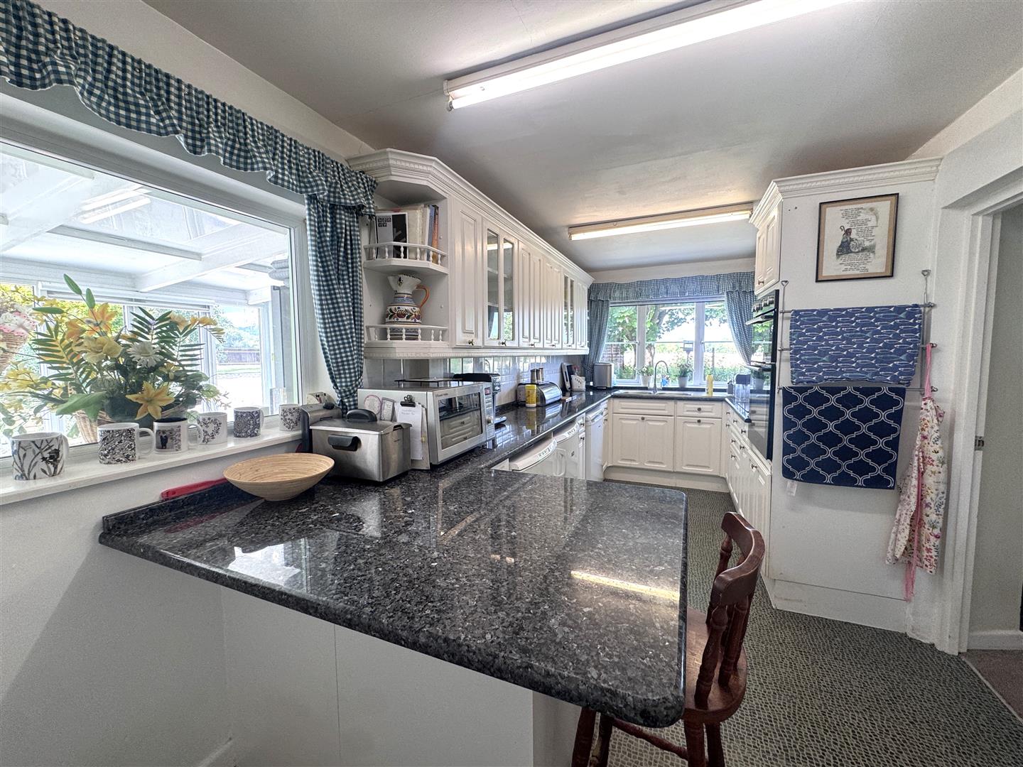 Kitchen / Breakfast Room - 4.98m x 2.54m (16'4 x 8'4) - Range of base and wall mounted units with granite worktops and tiled splashbacks, double bowl single drainer sink unit with mixer tap, integrated oven and grill, separate four ring induction hob and extractor fan over, under counter fridge / freezer, space for dishwasher, breakfast bar area, rear aspect window offering lovely views over the surrounding countryside, single radiator, open archway through to:
