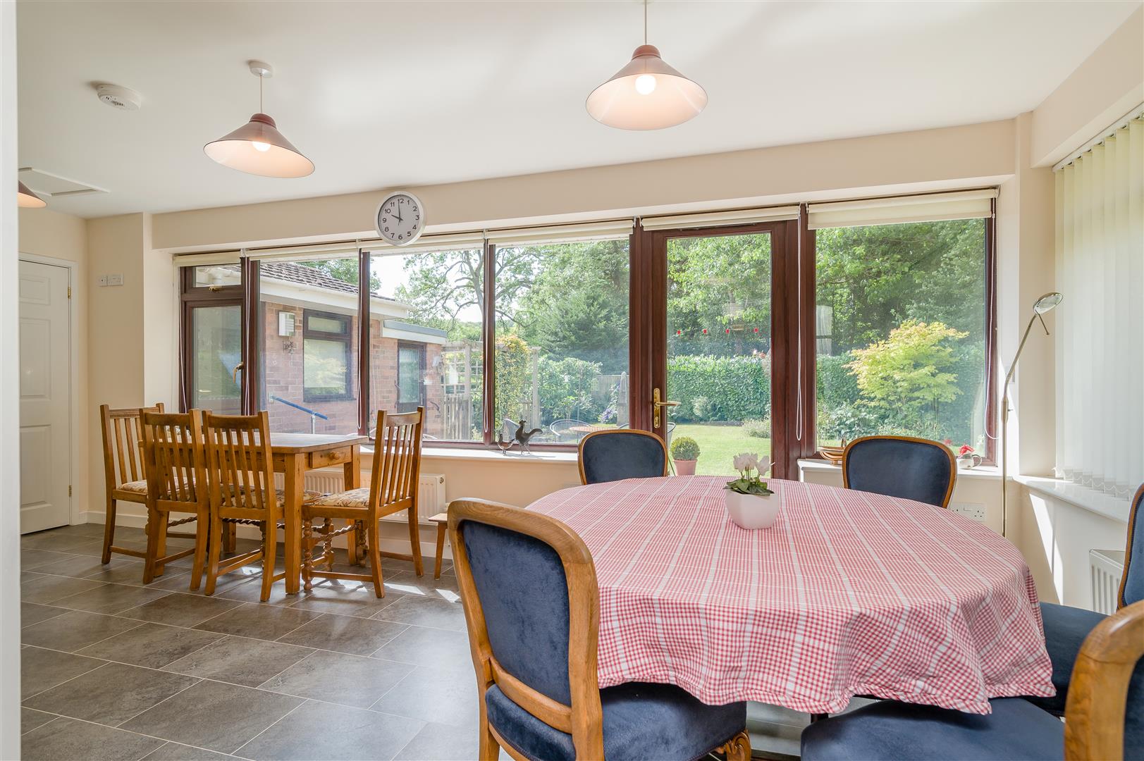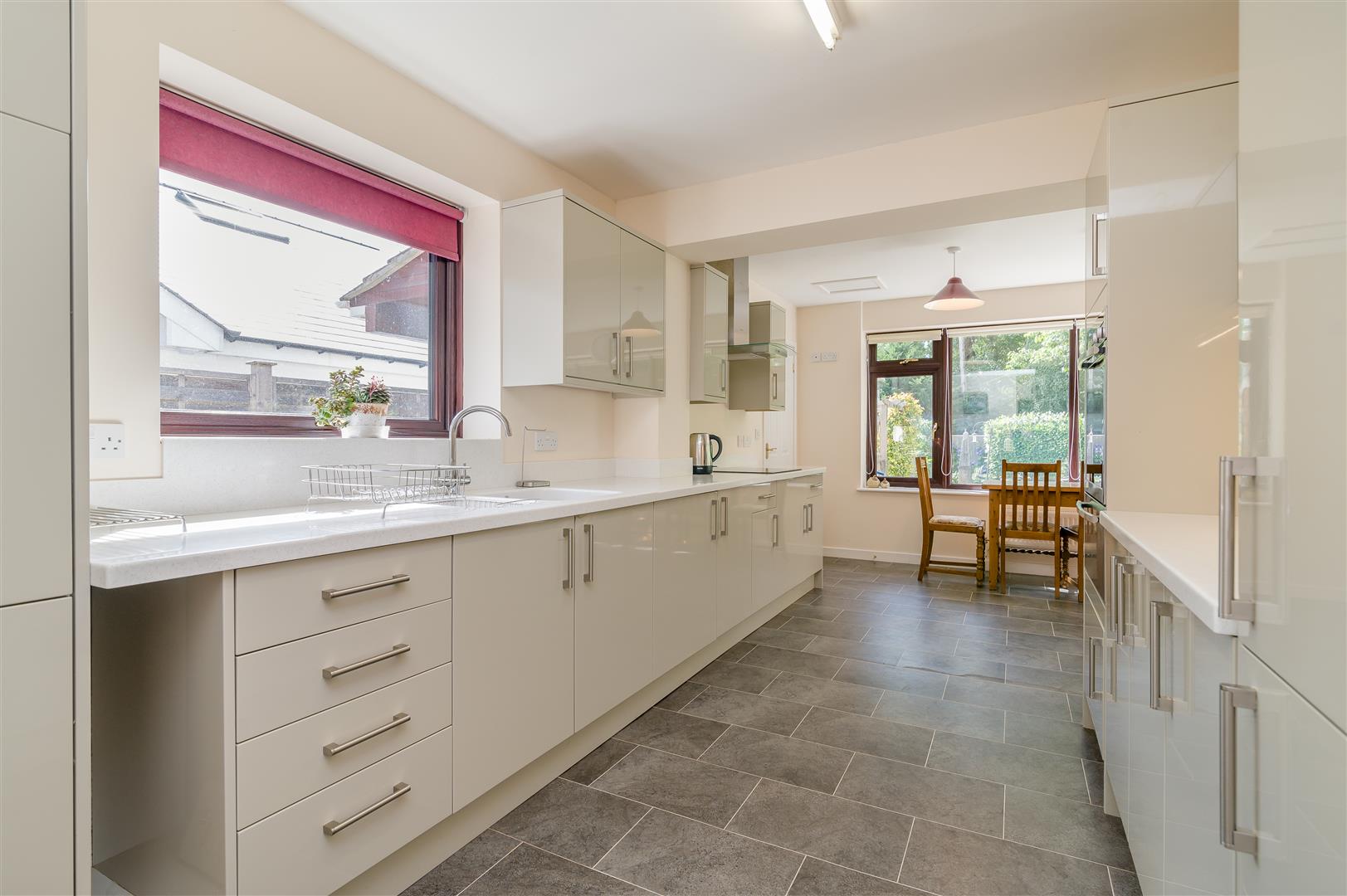 Family/Kitchen/Dining Room - 6.30m x 6.05m (20'8 x 19'10) - Fitted kitchen to comprise one and a half bowl, single drainer sink unit, cupboards under, a range of base and wall mounted units, integrated fridge/freezer, electric oven with warming drawer below, four ring ceramic hob, cooker hood above, single and double radiators, windows to the front aspect overlooking the gardens. Fully glazed door to the rear.