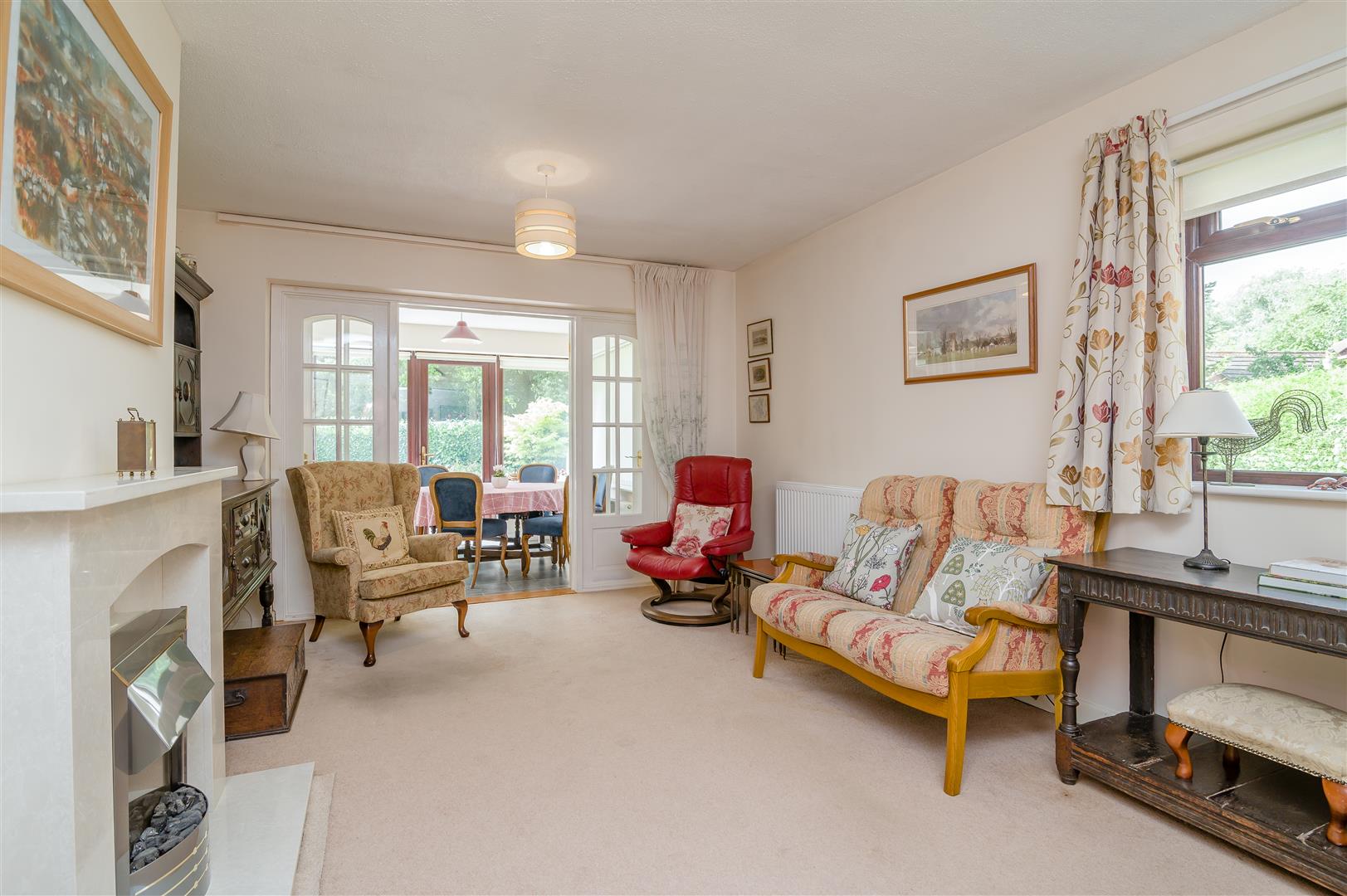 Lounge - 4.85m x 3.56m (15'11 x 11'8) - Feature fireplace with inset electric fire, radiator, side aspect window.