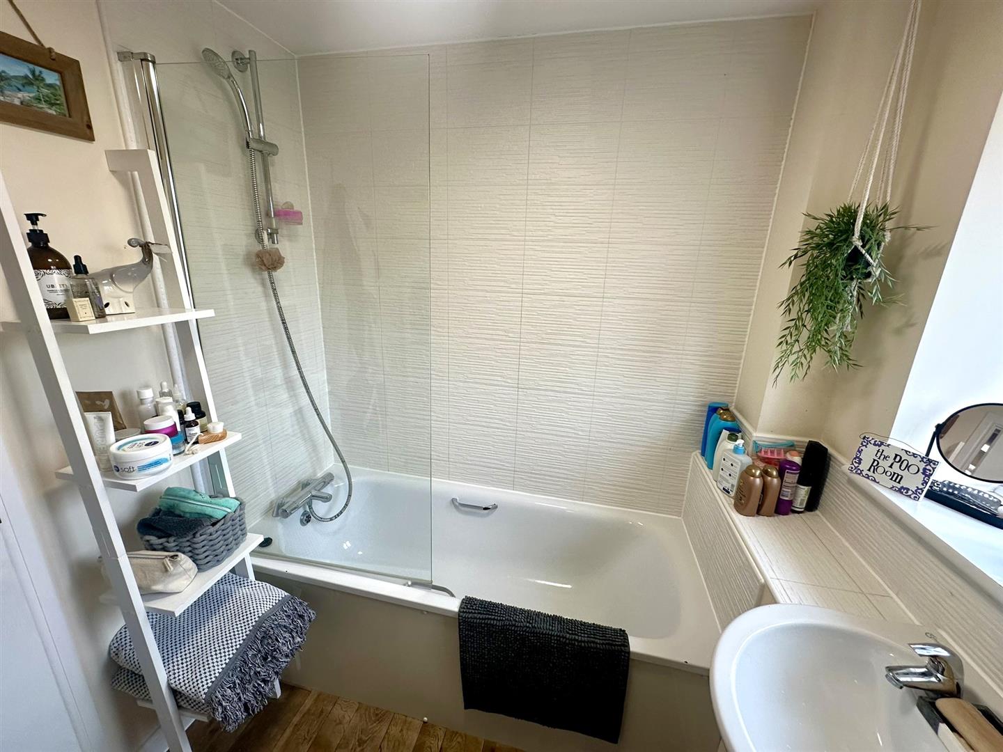 Bathroom - 2.13m x 1.96m (7'0 x 6'5) - Suite comprising panelled bath with mixer tap and shower detachment, integrated wash hand basin, WC, heated towel rail, tiled splashbacks, extractor fan, rear aspect frosted window.