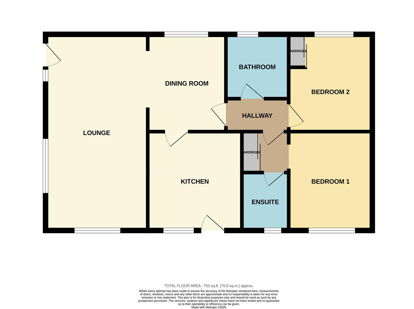Accommodation comprises 21FT LOUNGE with bow windows, DINING ROOM, fitted kitchen with built in appliances, bedroom one with FITTED WARDROBES and an en-suite shower room, bedroom two with FITTED WARDROBES and the bathroom with a white suite.