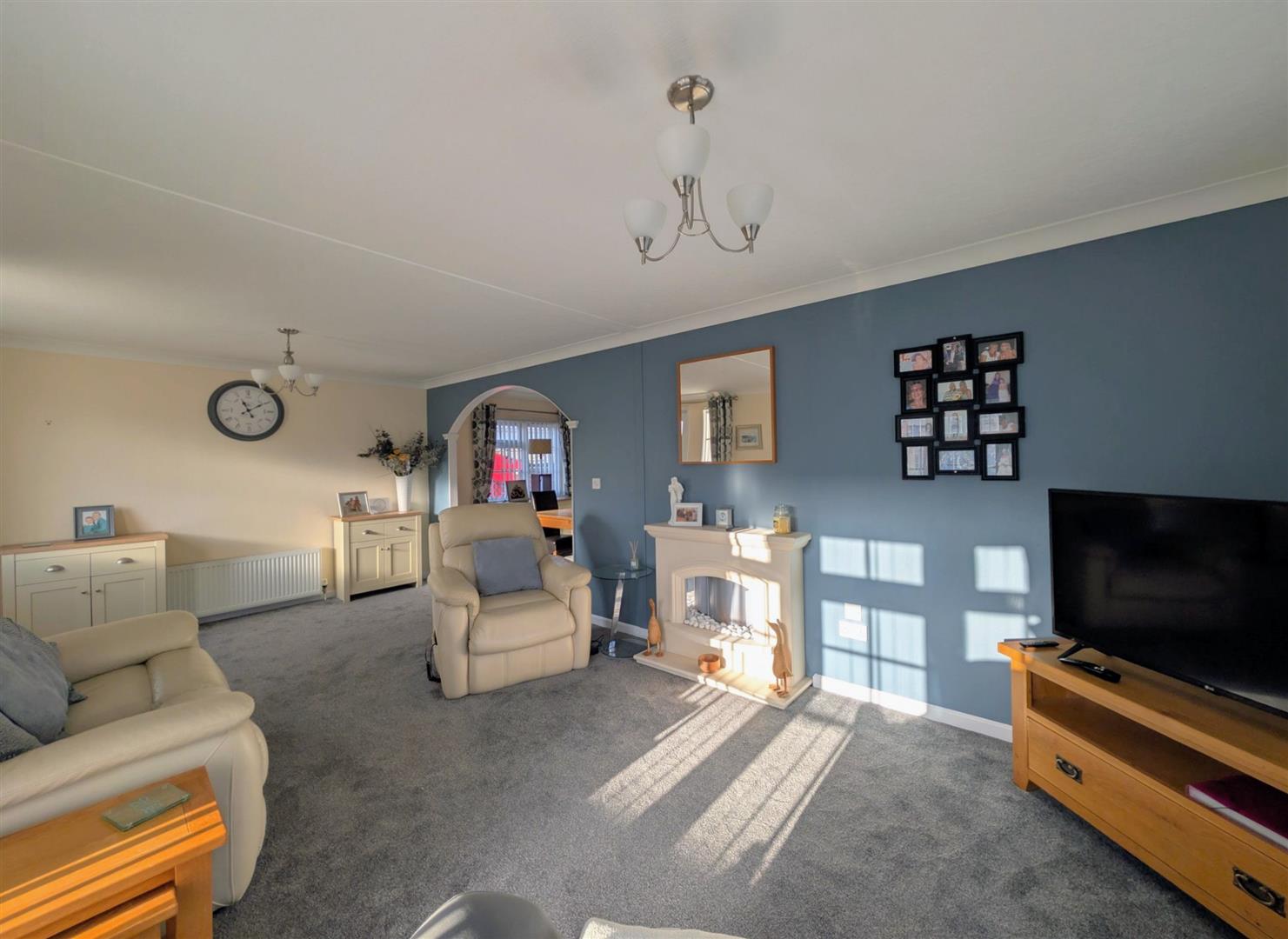 Lounge - 6.48m x 3.40m max (21'3 x 11'2 max) - Ornamental fireplace surround, two double radiators, tv point, coved ceiling, upvc double glazed Georgian style bow windows to front and side elevations, archway through to: