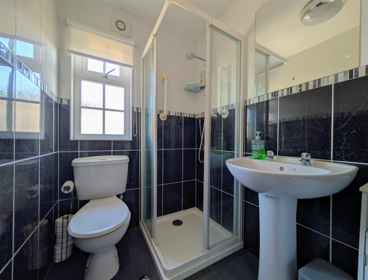 En-Suite Shower Room - 1.68m x 1.40m (5'6 x 4'7) - Corner shower enclosure and unit, low level w.c., pedestal wash hand basin, fully tiled walls, extractor fan, single radiator, upvc double glazed Georgian style window to side elevation.