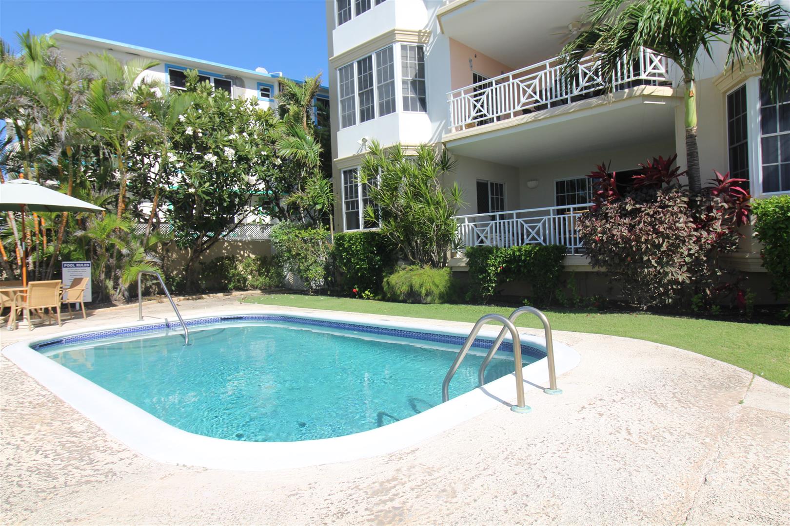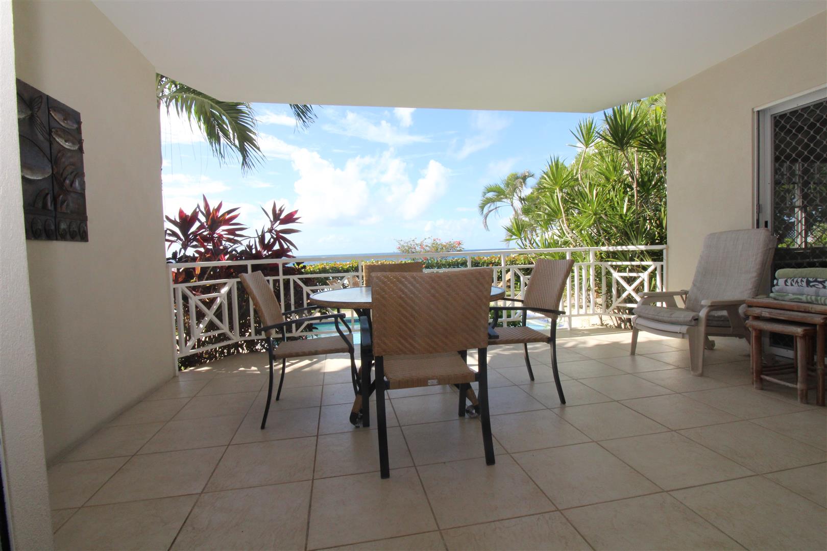 This 2 bedroom, 2 bathroom condominium offering open plan living, dining and kitchen leading out onto a large patio that overlooks the garden, pool and beach. The large master bedroom with spacious en-suite bathroom is positioned facing the gorgeous beach/ocean, with the second bedroom and bathroom located just off the dining area. Both bedrooms are air conditioned and have ceiling fans. The interior is elegantly fitted with porcelain floor tiles, granite/resin and marble counter-tops, crown moulding to the ceiling and contemporary Italian style open plan kitchen, laundry area with washer and dryer and a convenient owner's lock up located in the basement ideal for storing kayaks, bicycles, etc.