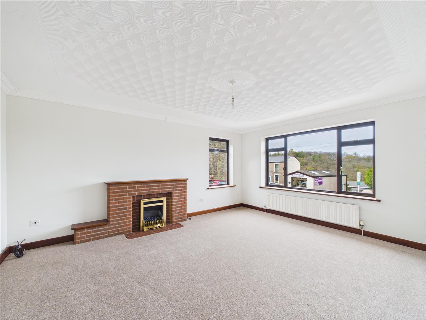 Living Room - 4.75m x 4.06m (15'7 x 13'4) - Feature brick built fireplace with inset electric fire, radiators, dual aspect windows with westerly Forest views.
