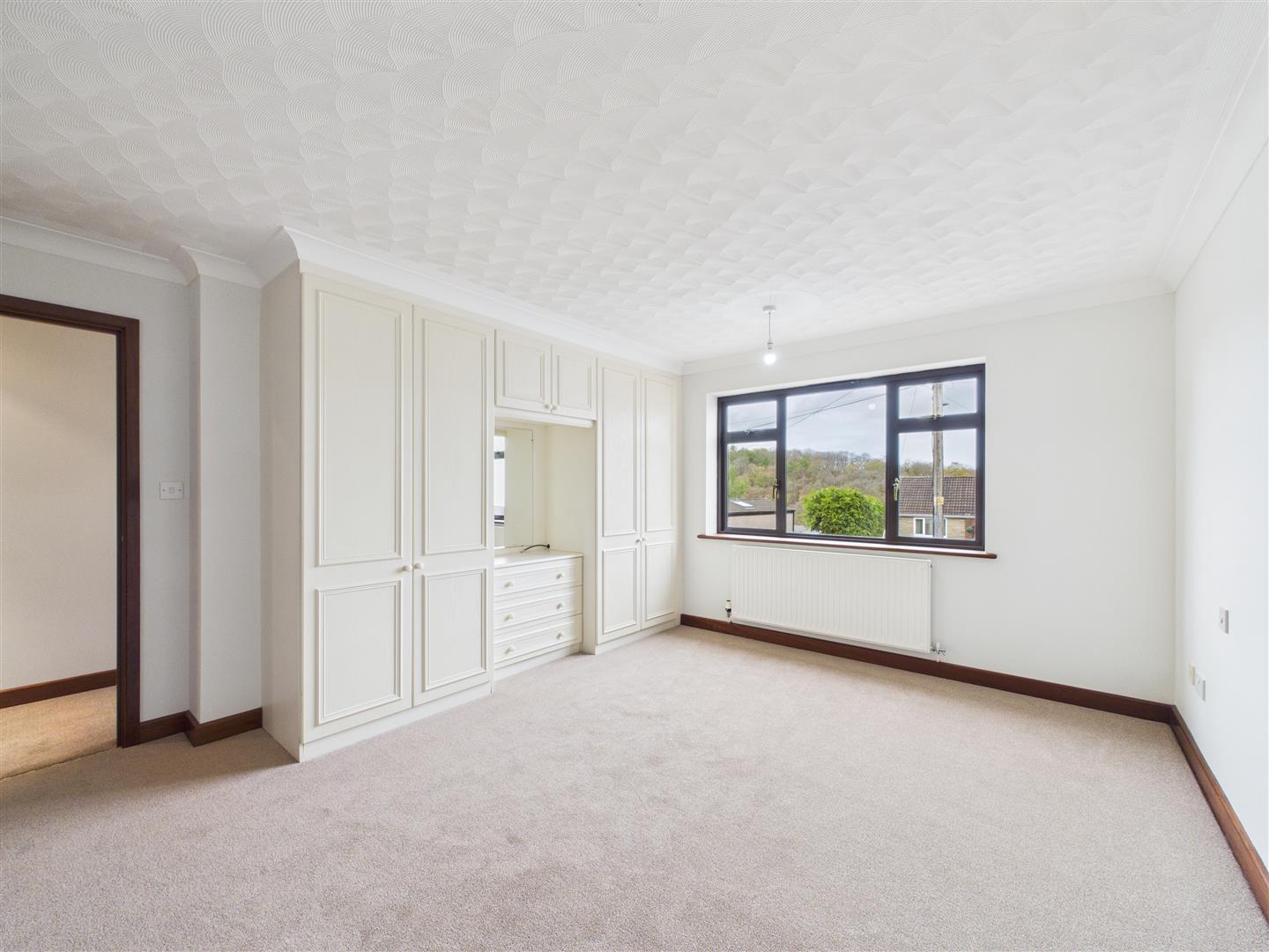 Bedroom One - 4.32m x 3.58m (14'2 x 11'9) - Pair of built in double wardrobes and a chest of drawers, radiator, front aspect window with Forest views, door into;