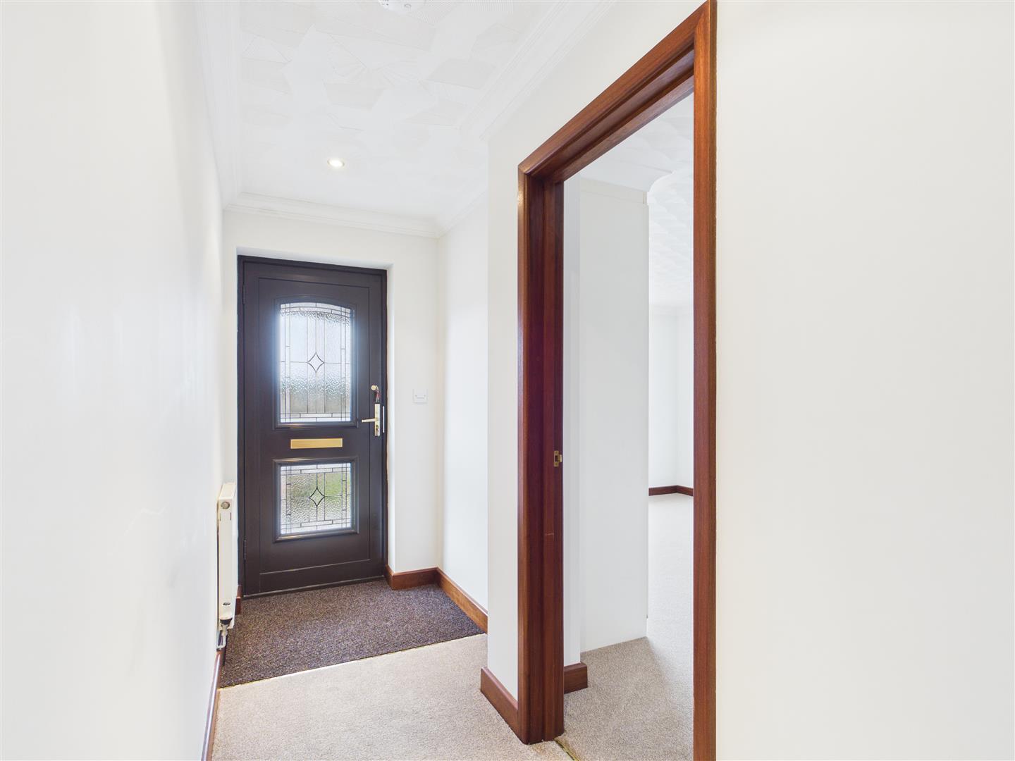 The property is approached from the front aspect via a covered porch with partly double glazed door leading into;