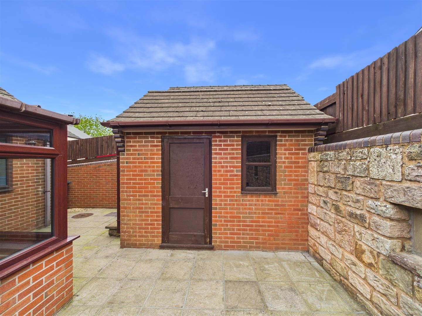 Outside - There are established planted areas to the front of the driveway, side paths lead to the rear garden. The low maintenance rear garden is laid to patio with a raised produce growing area and a brick built shed/workshop having power and lighting.