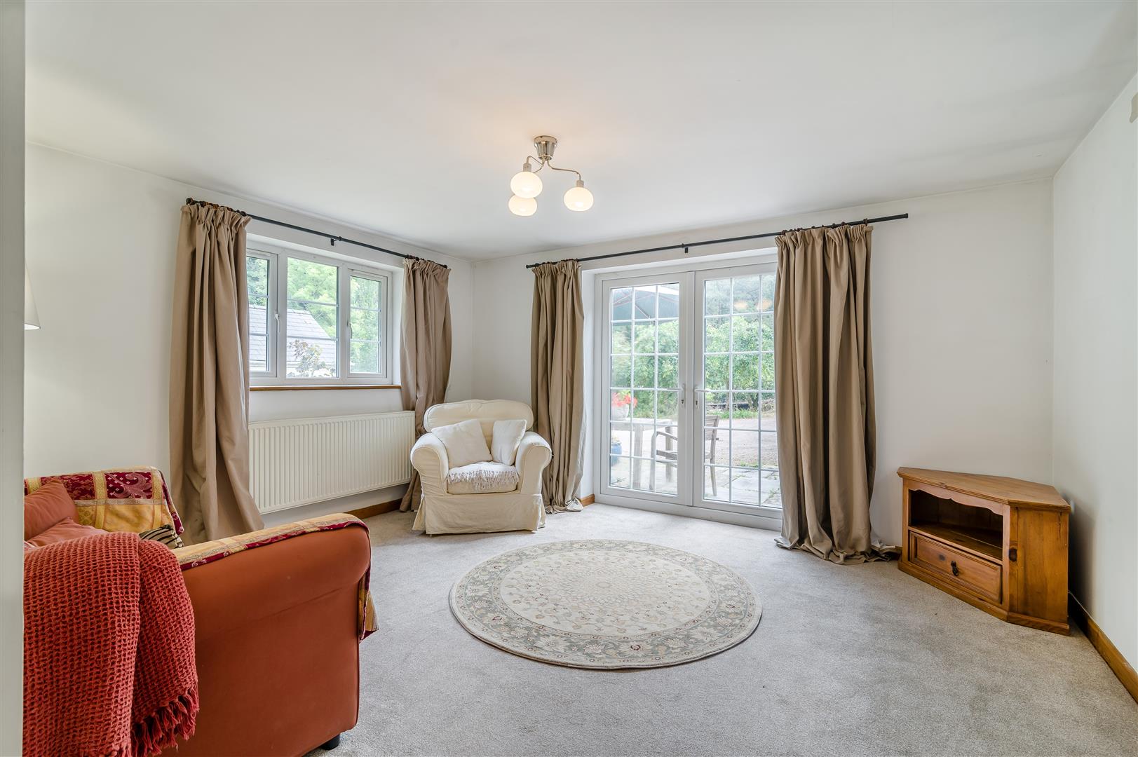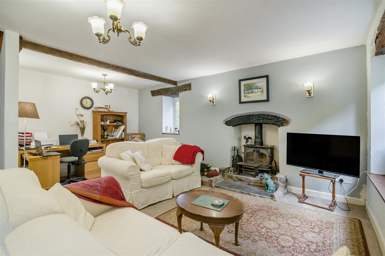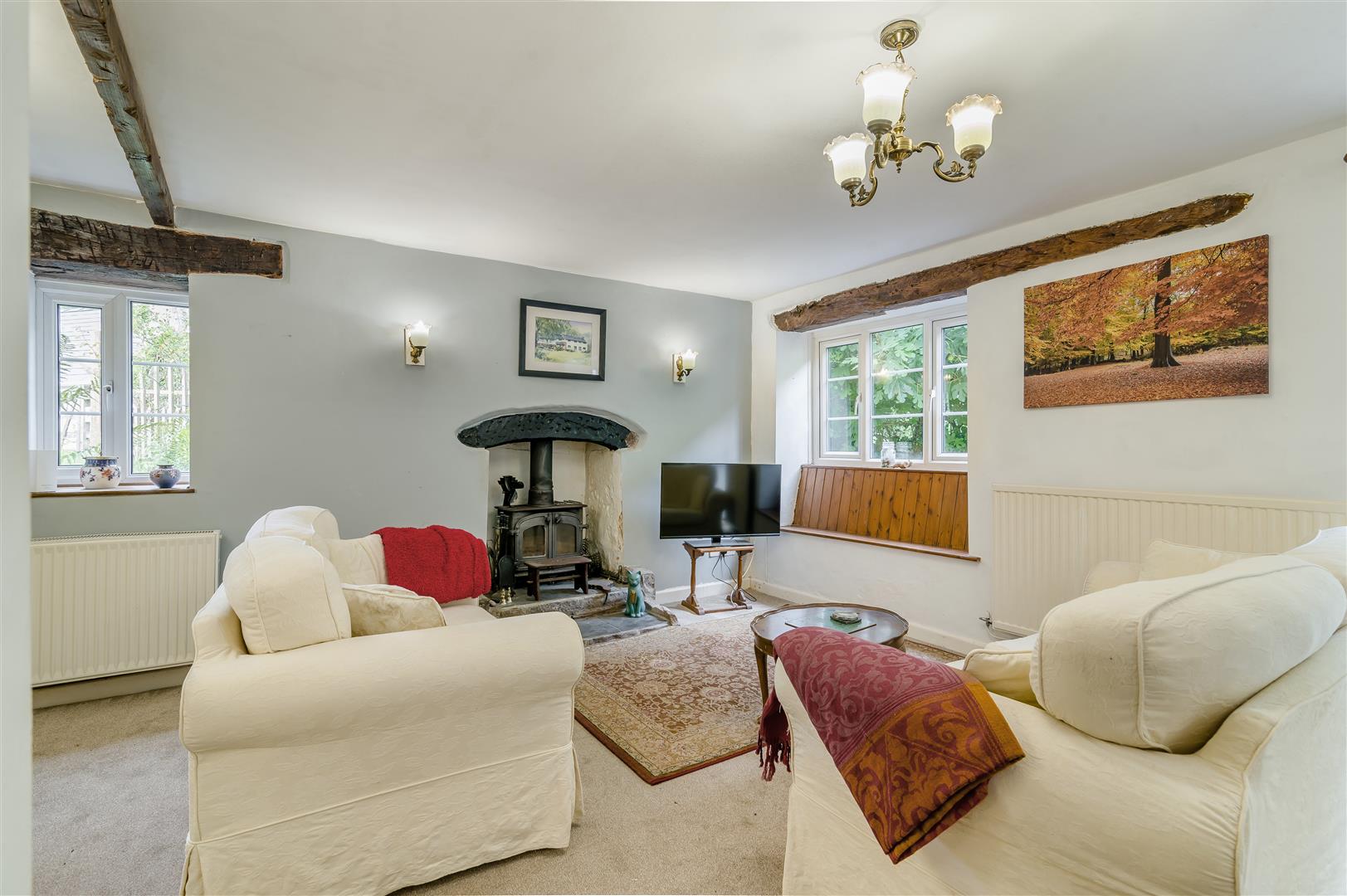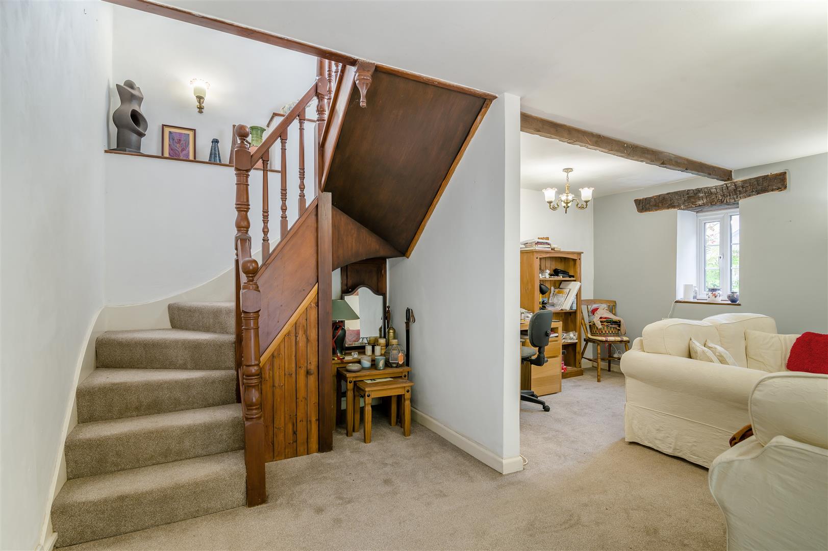 Sitting Room - 5.36m x 5.16m (17'07 x 16'11) - Feature fireplace with wood burner inset on a raised stone hearth, exposed beams, a window seat overlooks the garden, Gigaclear fibre point, stairs lead to the first floor landing with small storage cupboard beneath. French doors provide easy access to the gardens. Door leads into;