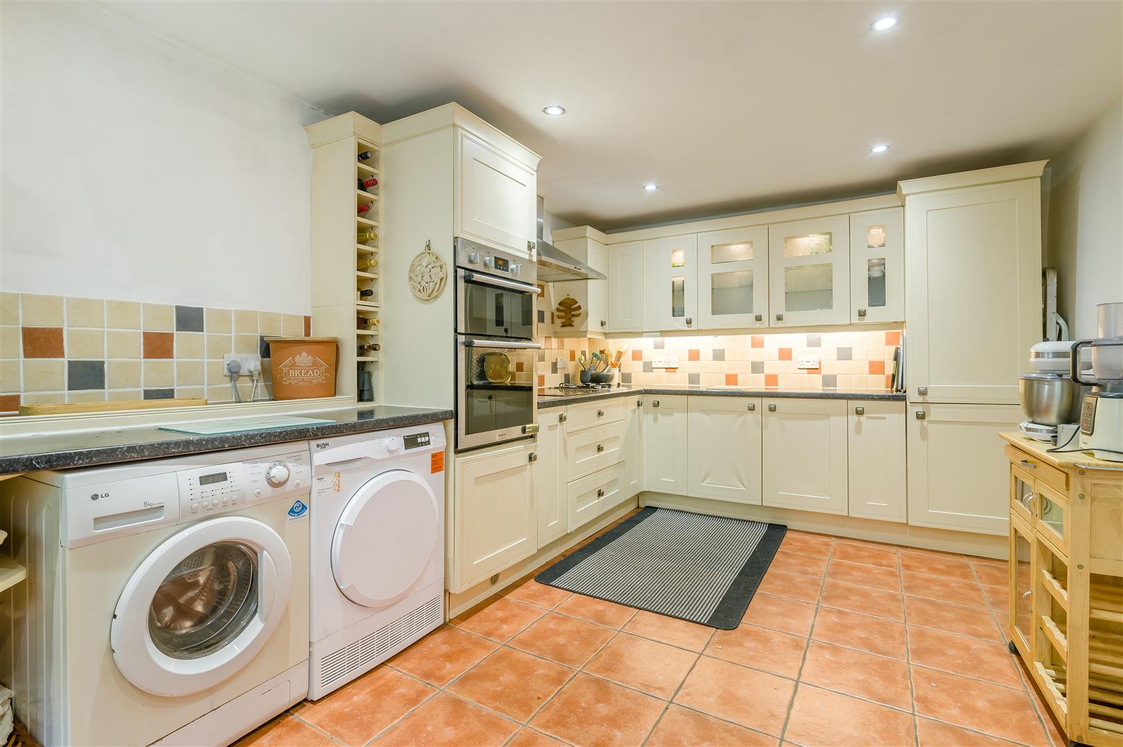 Kitchen - 5.59m x 3.12m (18'04 x 10'03) - Comprising a range of wall and base level units with laminate worktops and tiled splashbacks, inset 1.5 bowl sink unit with drainer, integral appliances include an eye level double electric oven, dishwasher and fridge/freezer. Space and plumbing for a washing machine and tumble dryer. Tiled floor, front aspect window.