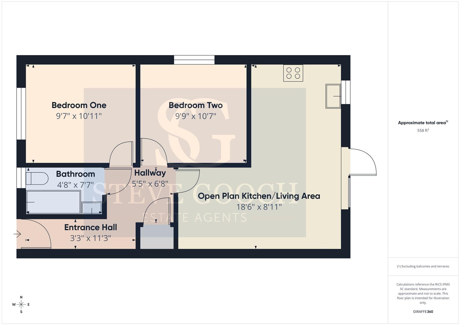 The accommodation comprises: ENTRANCE HALL, OPEN PLAN KITCHEN / DINING / LIVING SPACE, TWO BEDROOMS, and a BATHROOM.