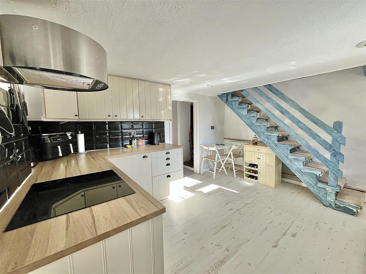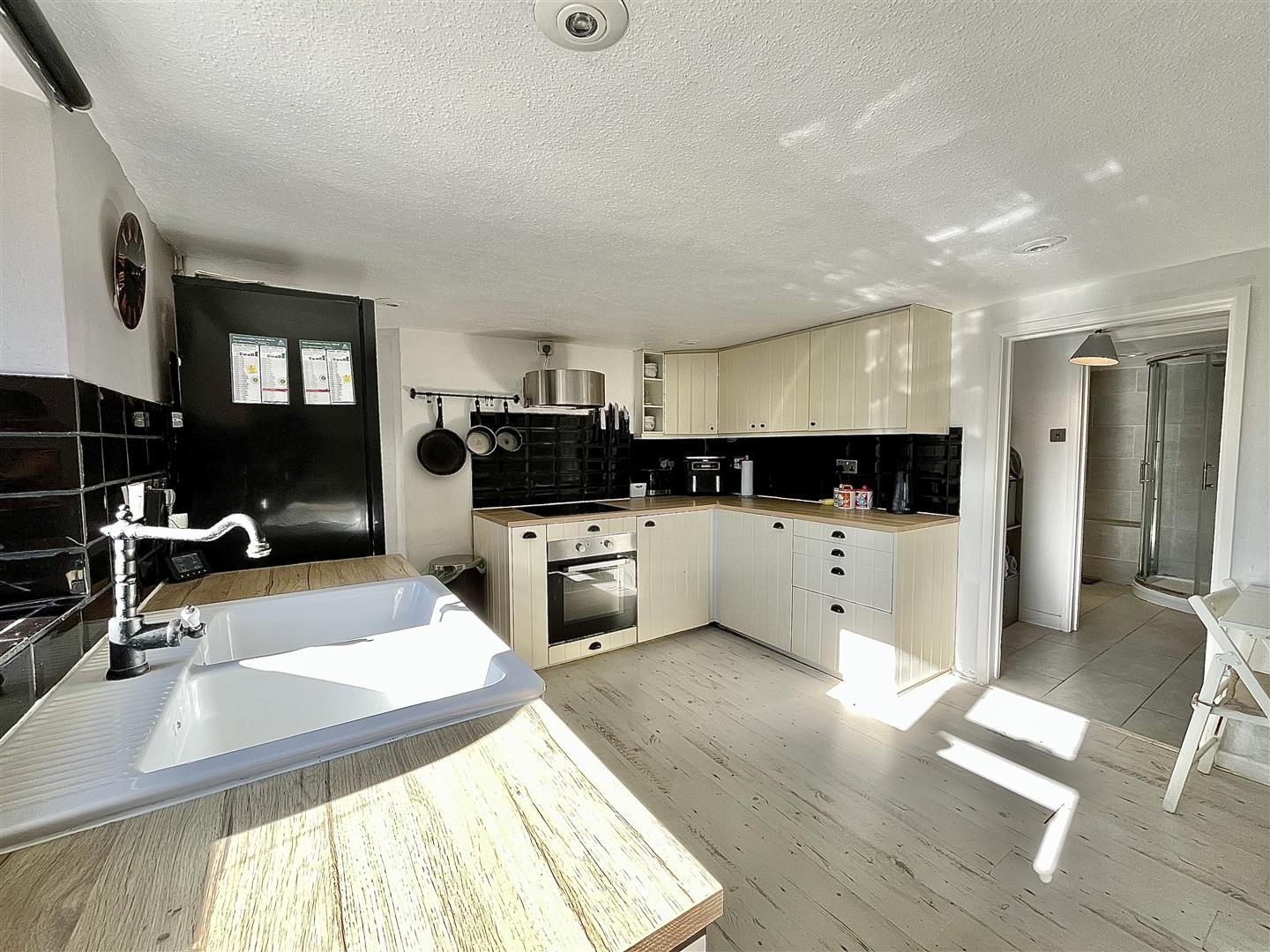 There is an integral electric oven, induction hob and extractor hood as well as space and plumbing for a slimline dishwasher and fridge/freezer. Additionally there is space for a small breakfast table and a radiator. From the kitchen there is access to the utility room and a small lobby area leading to the bathroom.