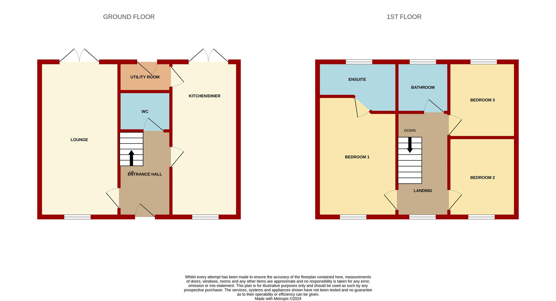 Landing - Access to roof space, ceiling lights, mains wired smoke alarm system, power points, single radiator, front aspect upvc double glazed window overlooking the driveway, doors into: