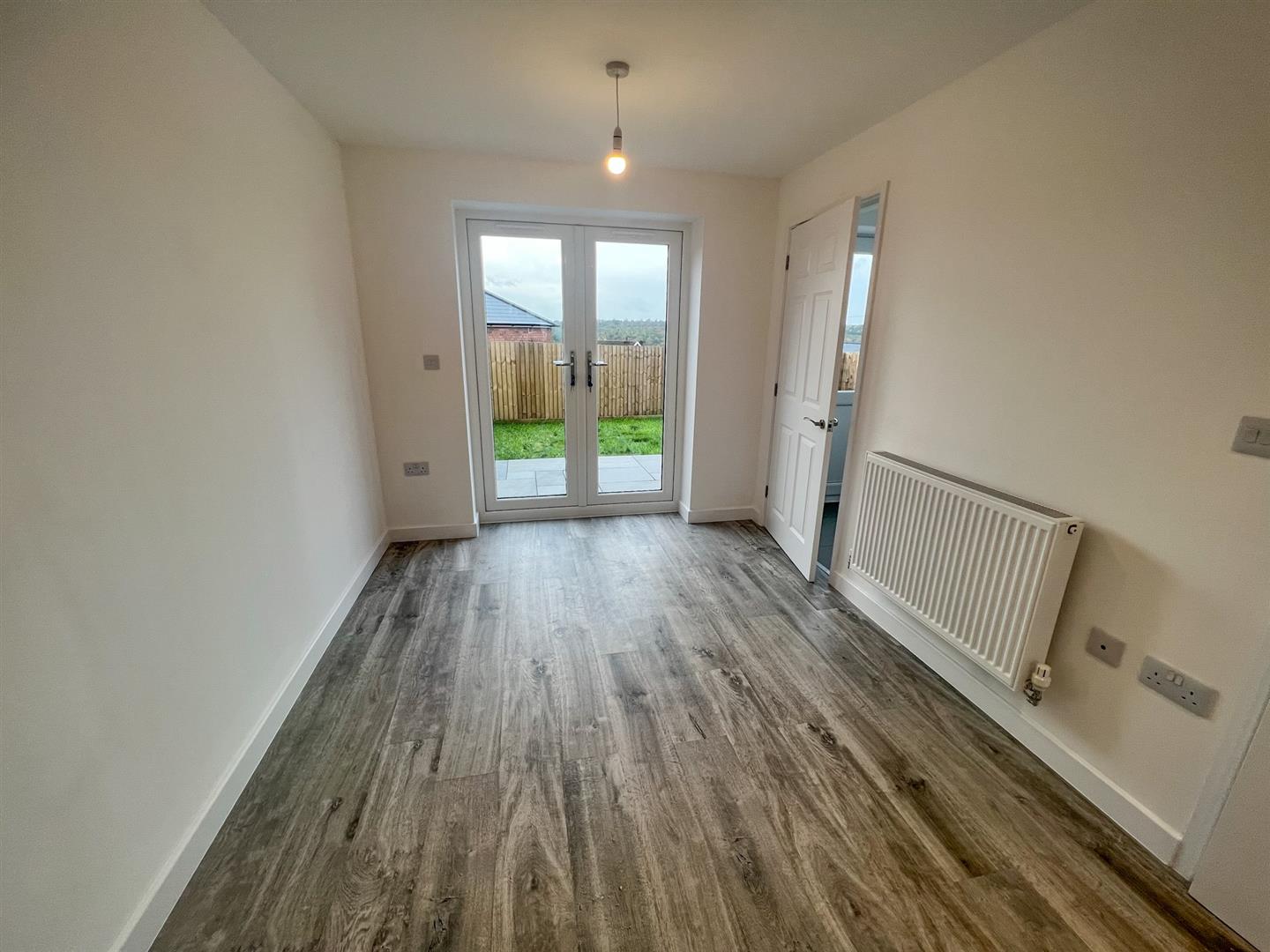 Dining Room- Ceiling light, power points, tv point, double radiator, continuation of the laminate flooring, pair of upvc double glazed doors opening out onto the rear garden with views towards forest and woodland in the distance. Door opening into: