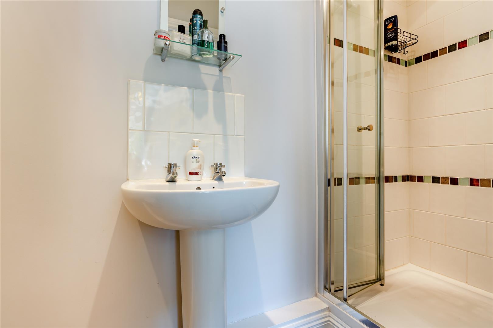 En-Suite Shower Room - Mains fed shower cubicle with tiled surround, low level w.c, pedestal washbasin, built in store cupboard, tiled floor.