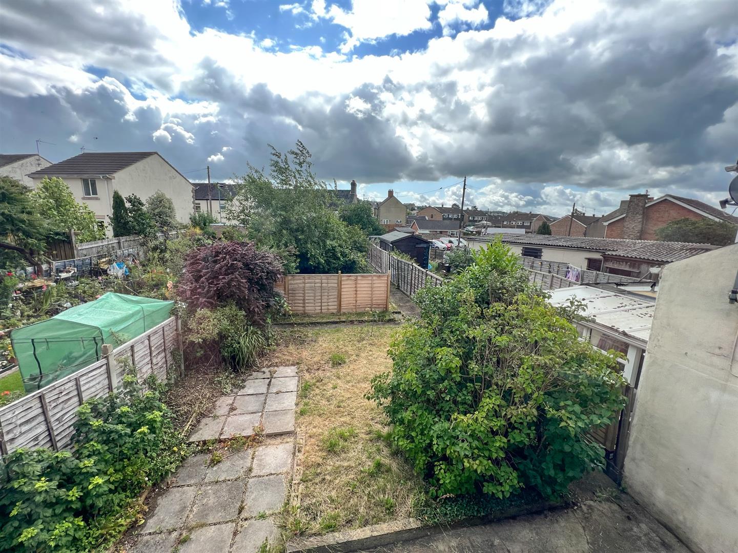 Towards the rear of the garden, a pair of double gates offer access to the off-road parking area. Additionally, there is a small timber shed, providing practical storage space.