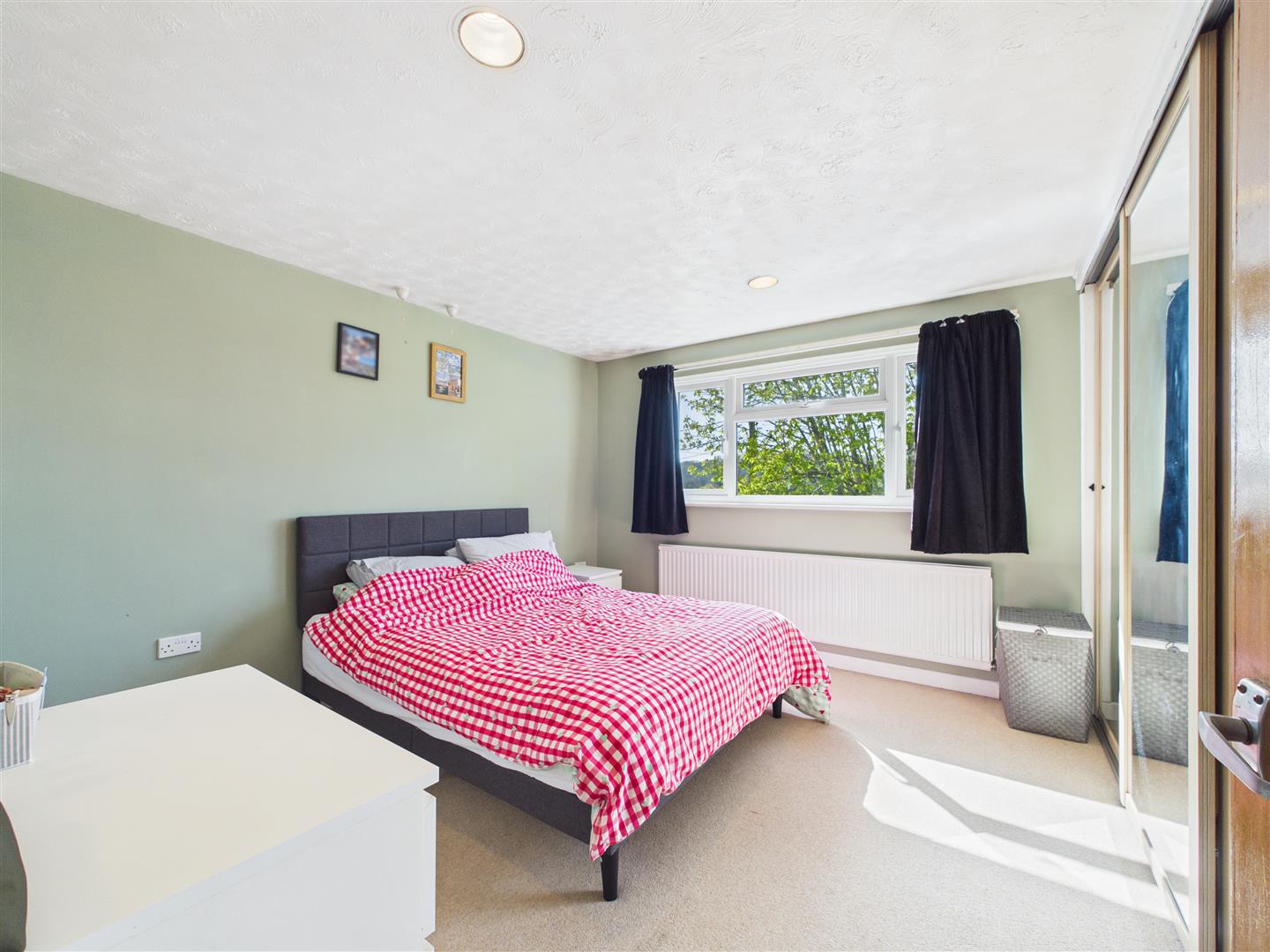 Bedroom One - Inset ceiling lights, lazy boy light switch, single radiator, power points, range of built-in wardrobes with hanging rail and shelving, front aspect window over looking garden and views towards forest and woodland. Opening to: