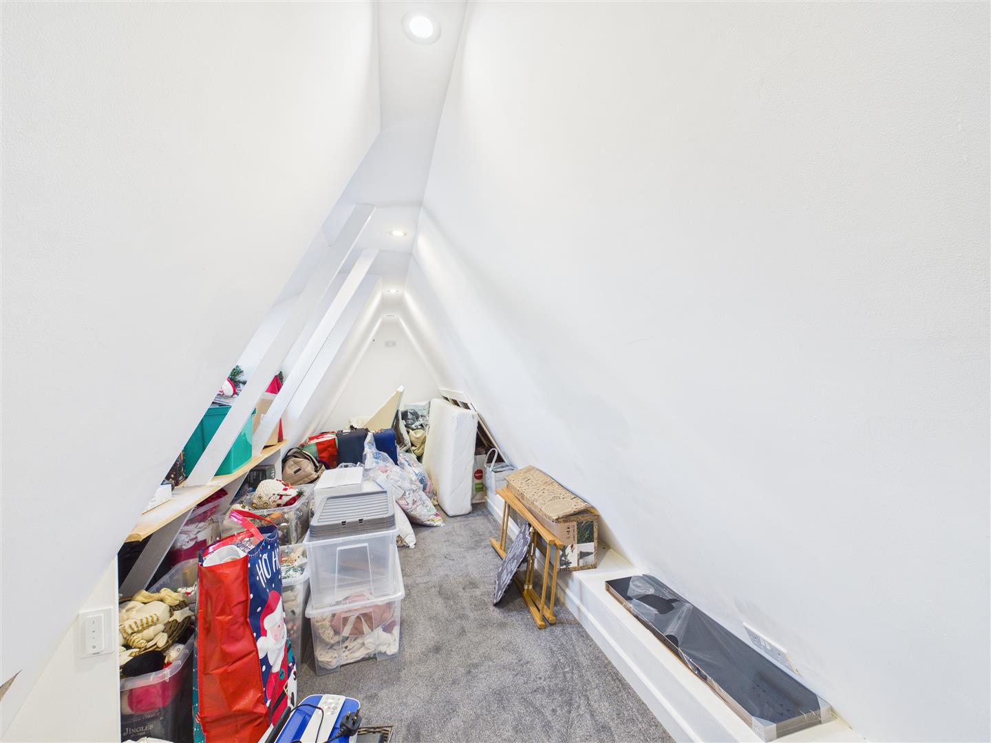 Loft - Accessed via a drop-down ladder, power and lighting, currently used as storage could potentially make a play space.